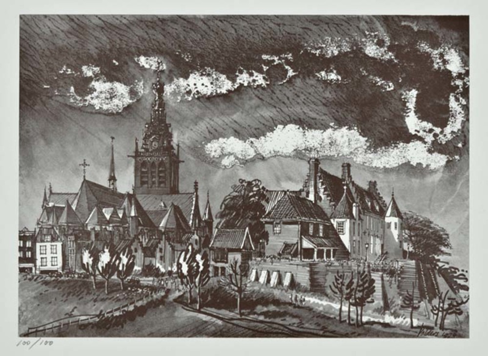 Drukplaat van de ets 'De Dom' aan de Steenstraat