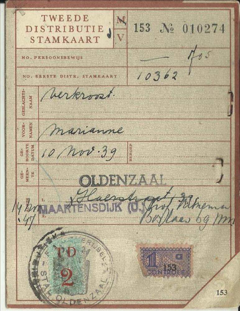 Tweede Distributiestamkaart van : Verkroost, Marianne