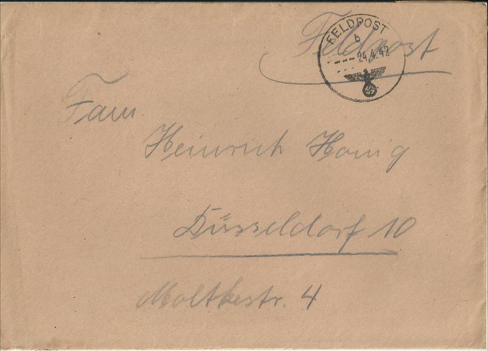 brief van Heinrich (soldaat) Honig aan Frau Heinrich...