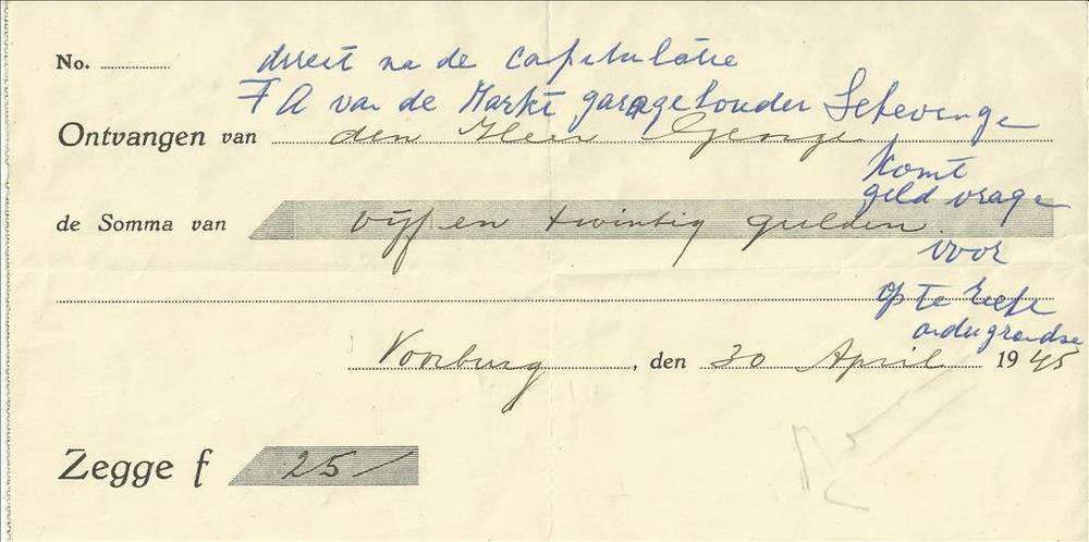 nota van een bedrag van 25 gulden - Voorburg april 1945