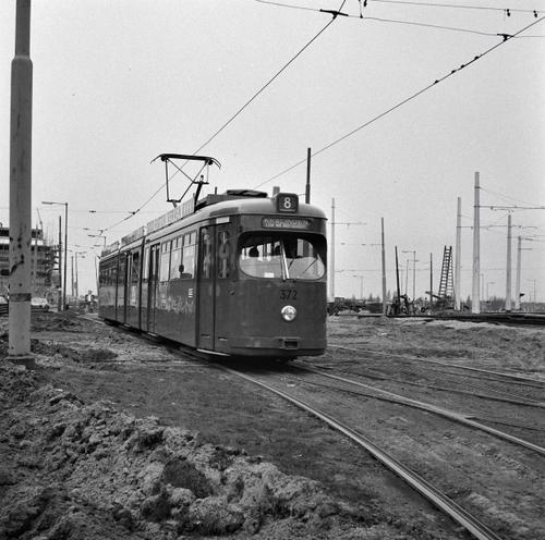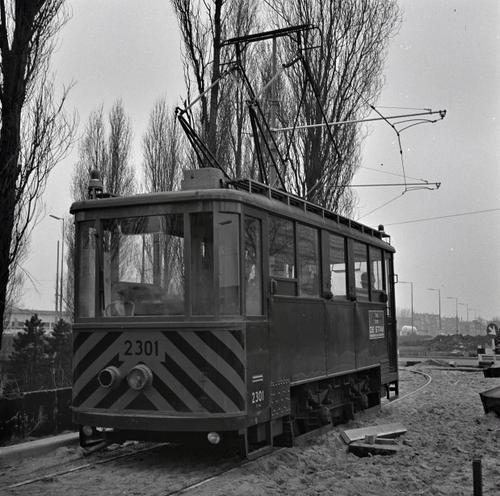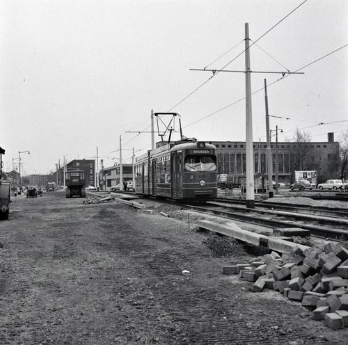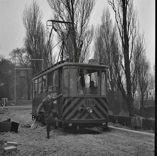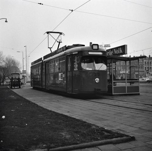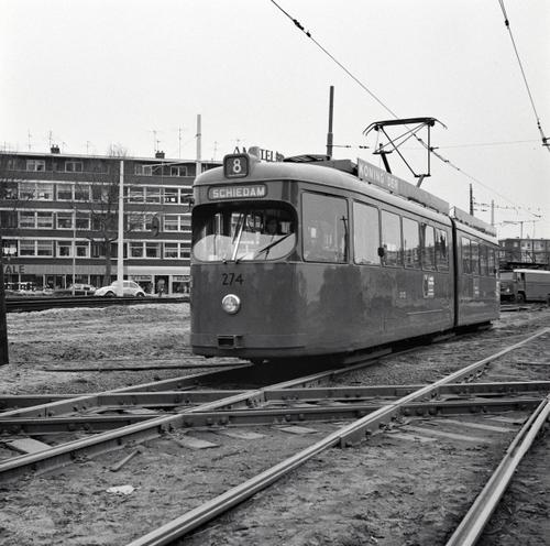 Rotterdam, Droogleever Fortuynplein, met RET slijpwagen