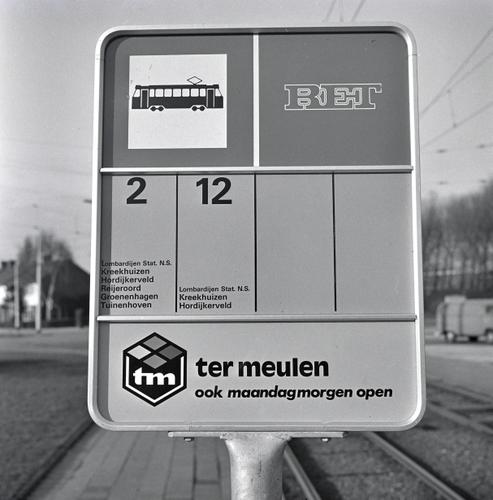 Rotterdam, Molenvliet, detail RET haltebord
