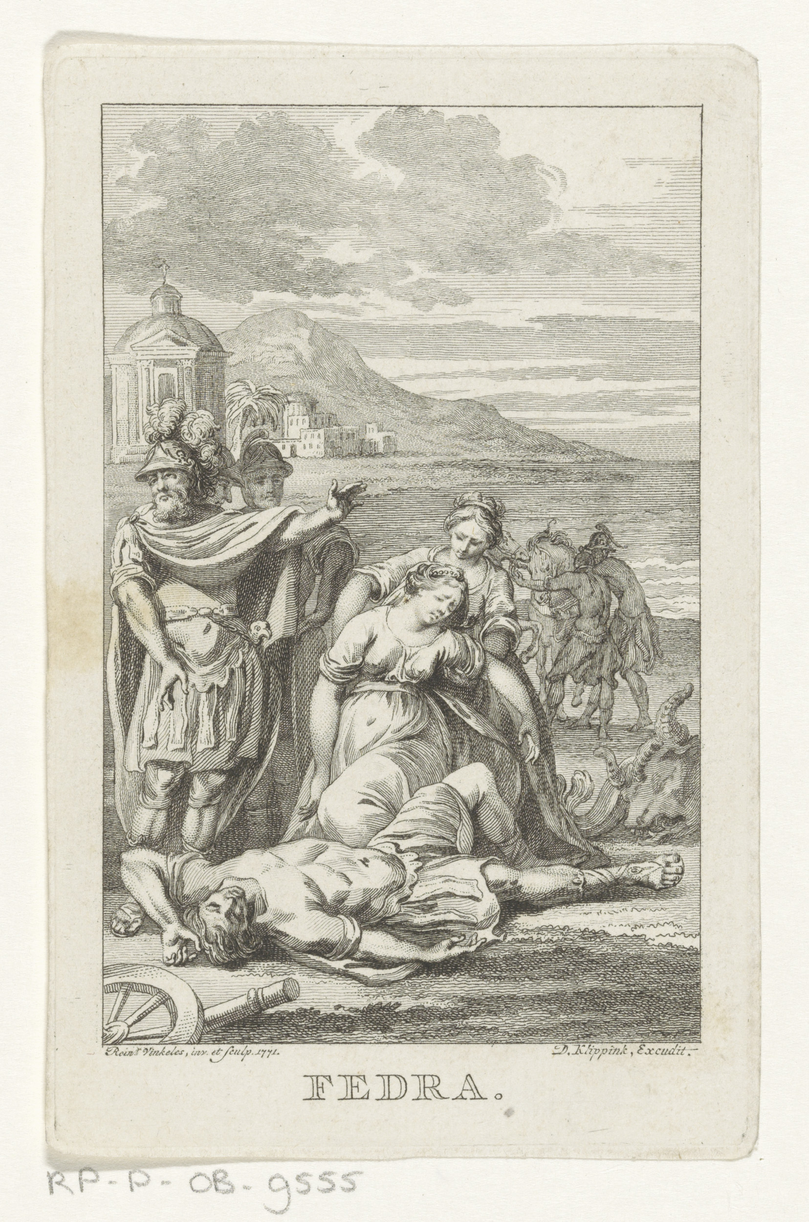 Theseus treurt bij het lichaam van Hippolytos