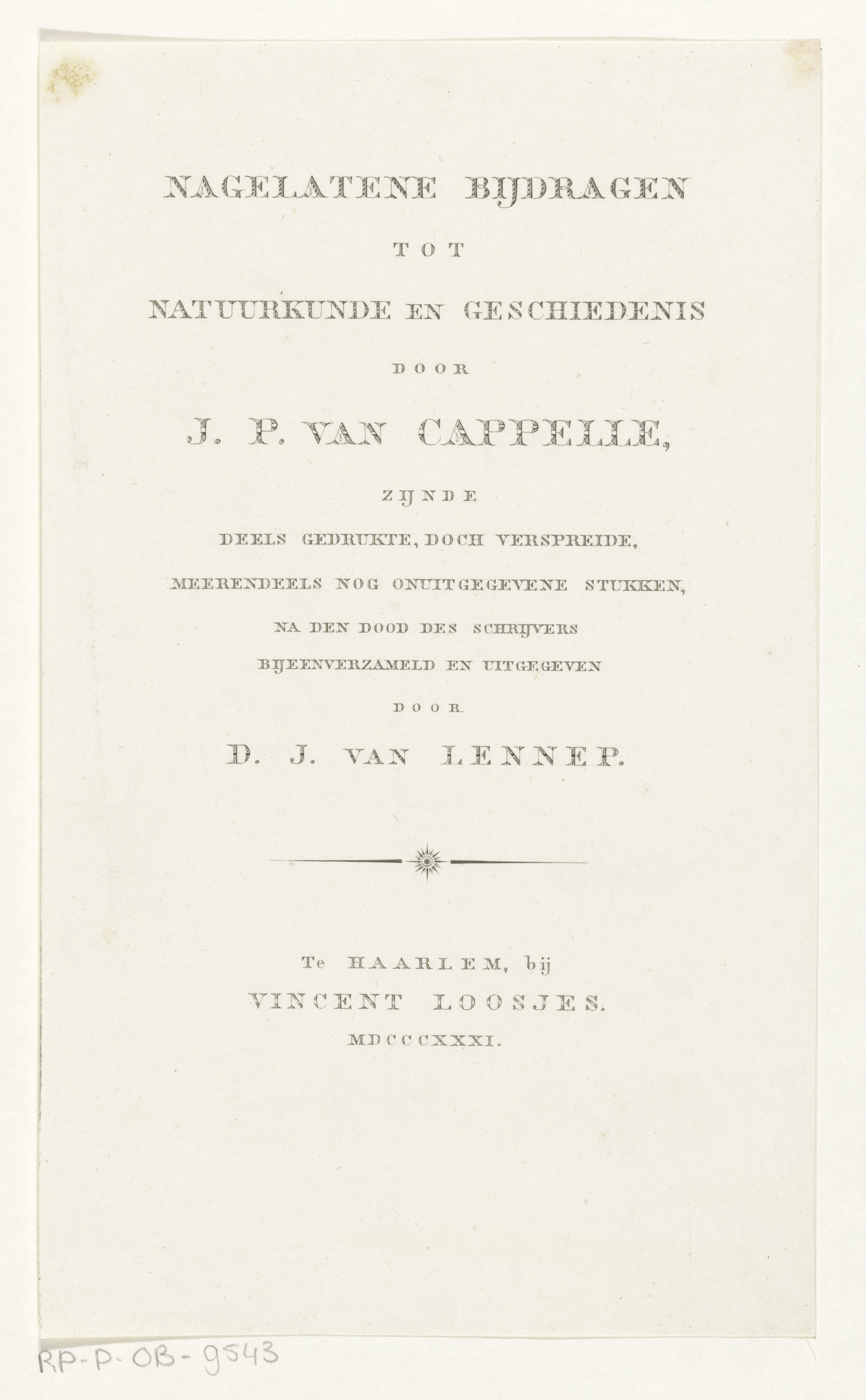 Titelpagina voor: J.P. van Cappelle, Nagelatene bijd...