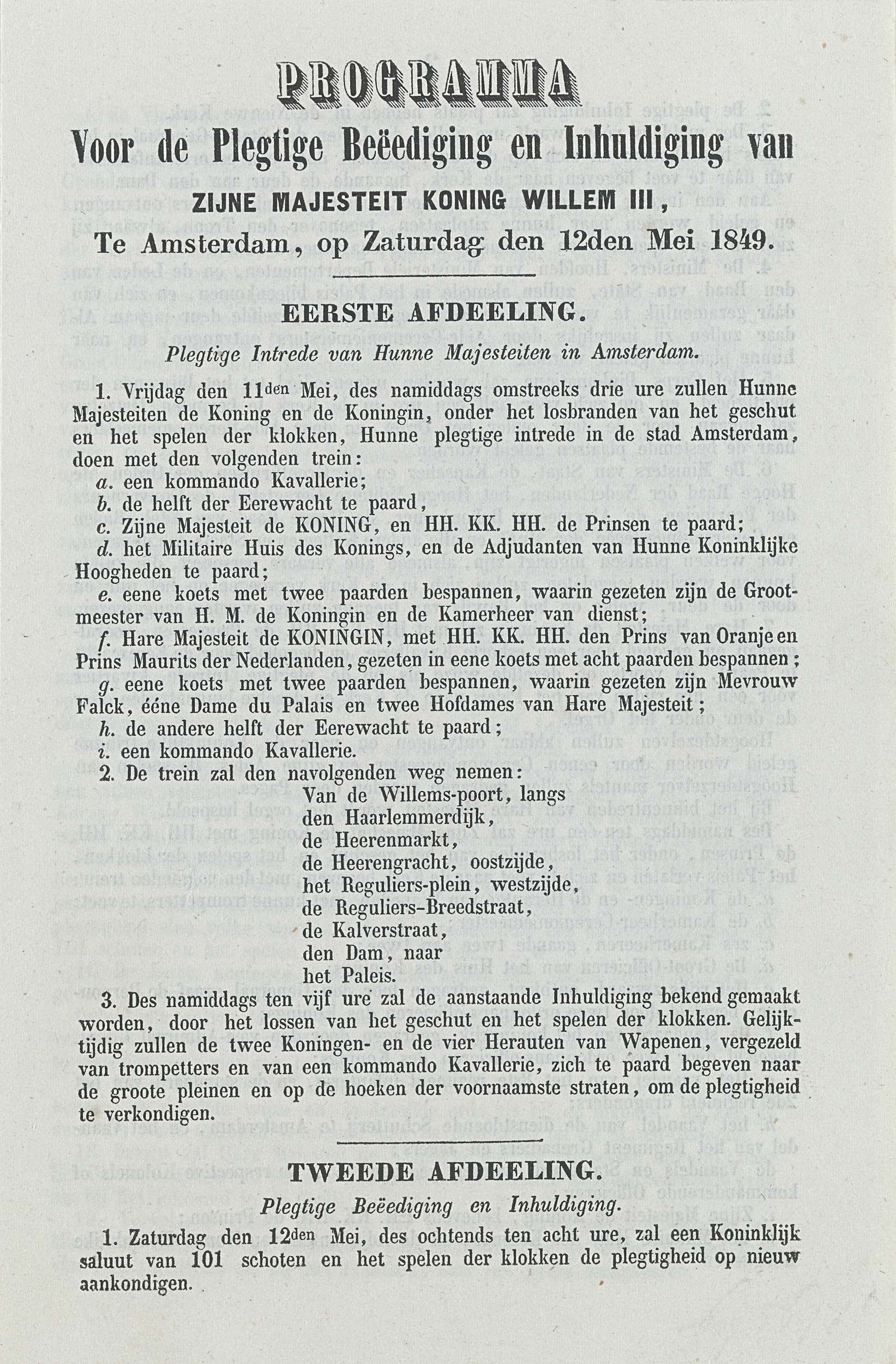 Toegangsbewijs voor de inhuldiging van koning Willem...