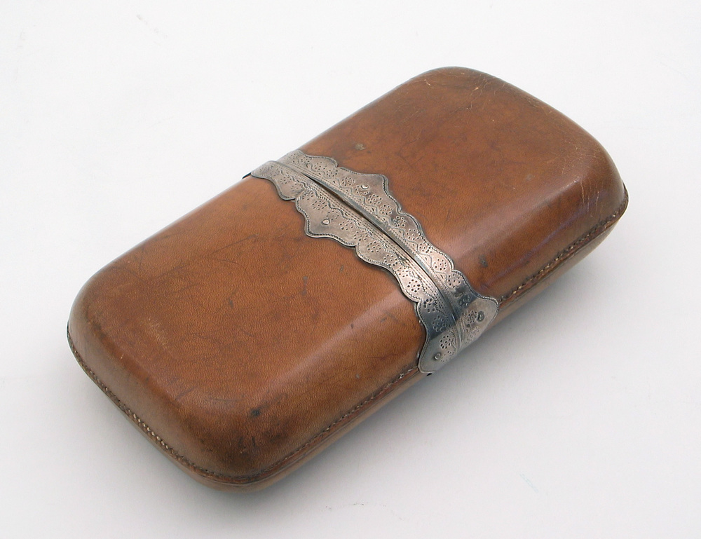 sigarenkoker vervaardigd van leer met zilveren montu...