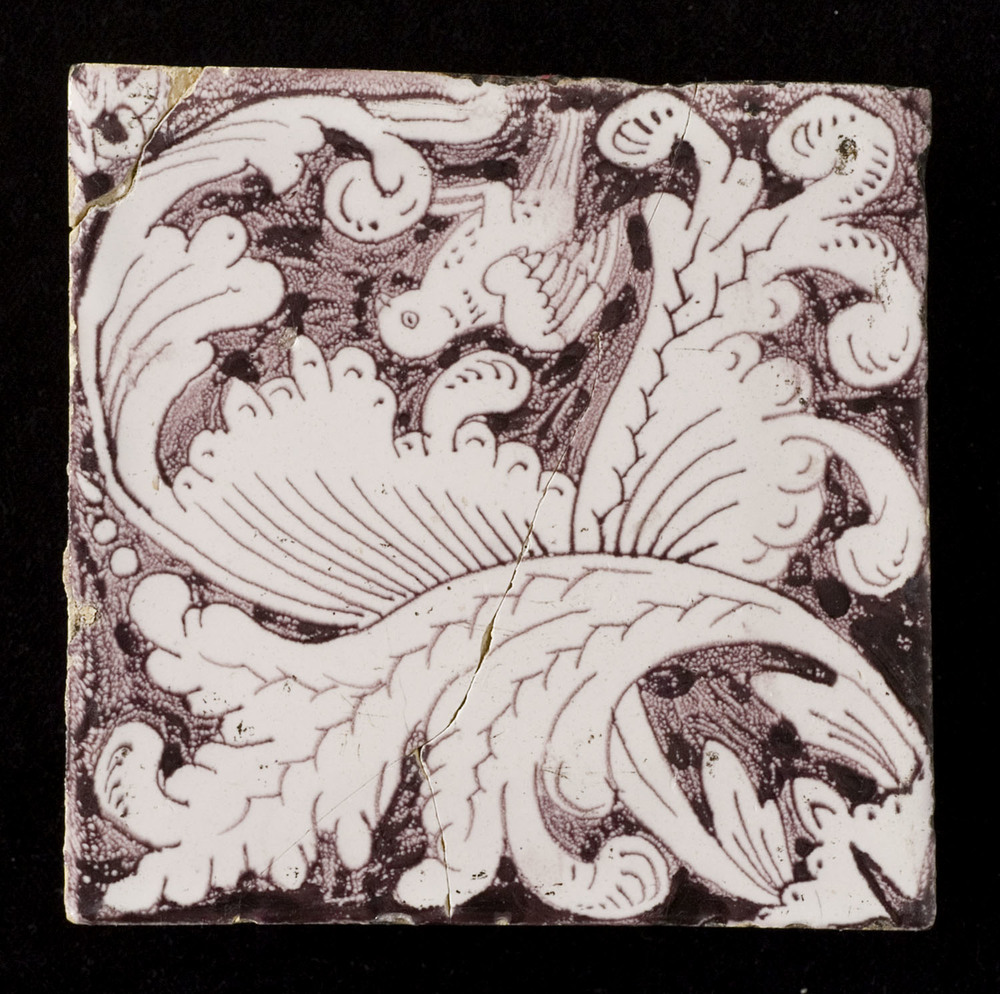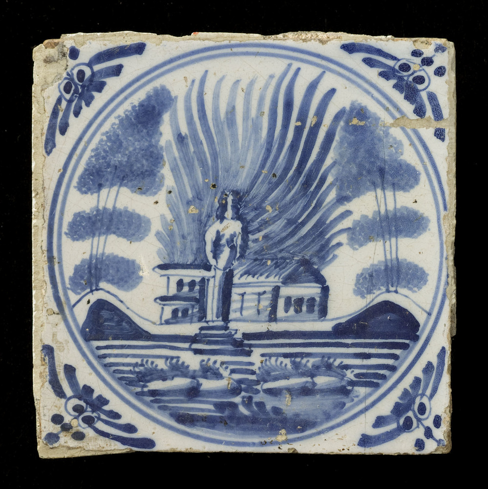 Tegel van keramiek met tinglazuur, voorstellende: or...