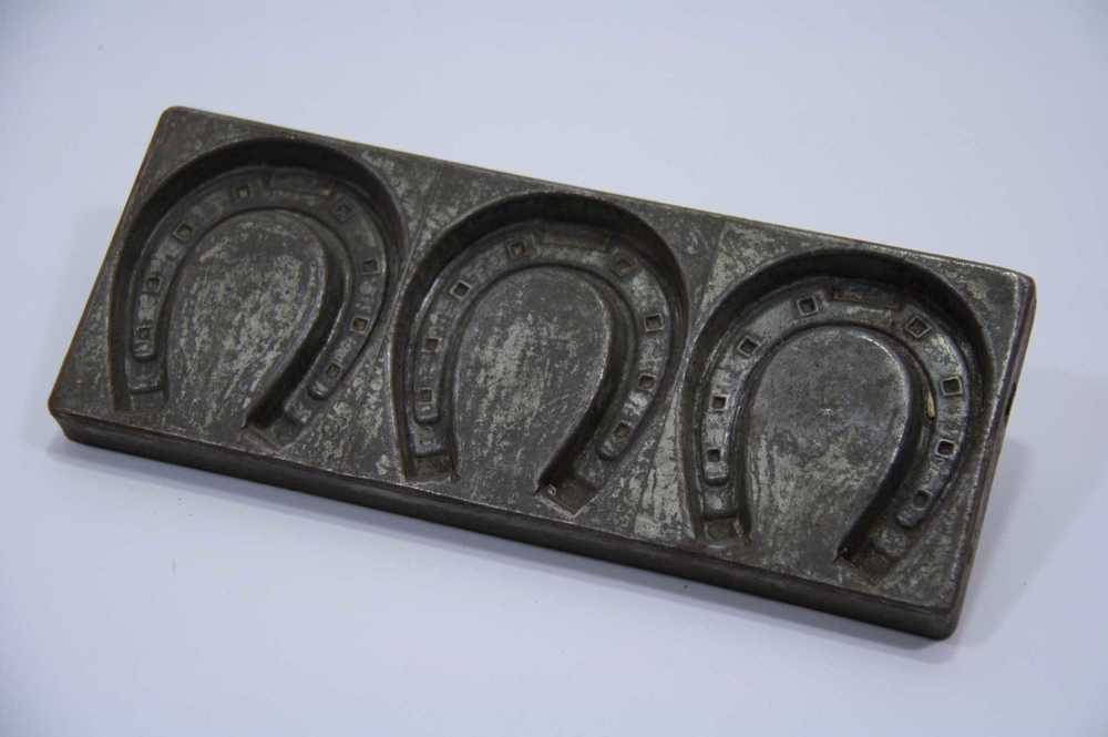 Chocoladevorm van metaal voor 3 hoefijzers uit de 19...