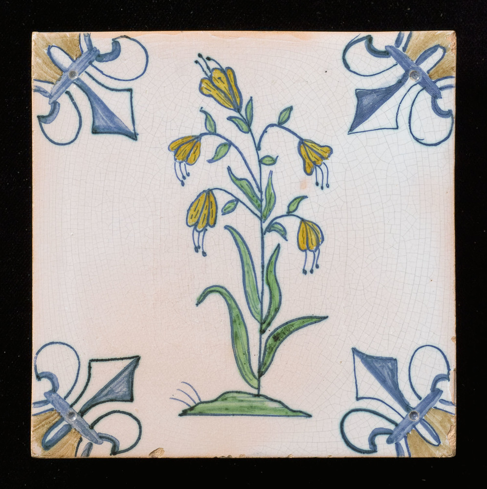 Tegel van keramiek met tinglazuur, voorstellende: ee...