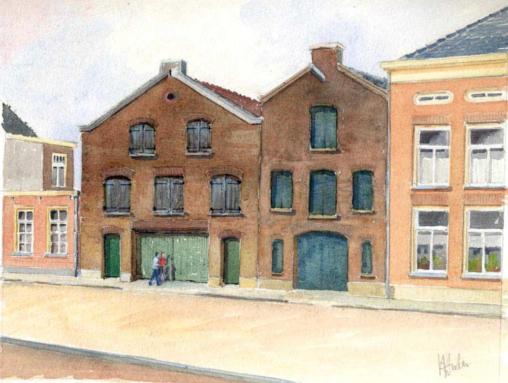 Aquarel, voorstellende pakhuizen aan de Ambtmanstraa...