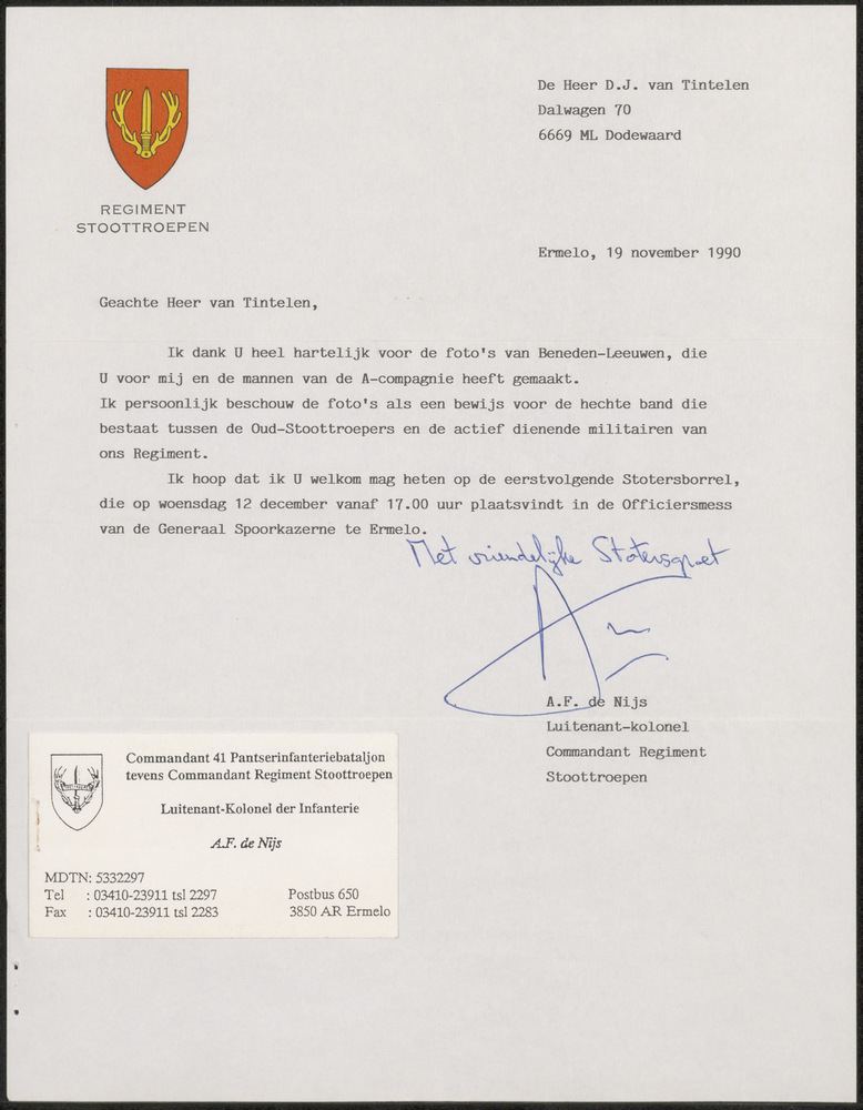 Brief van de Commandant 41 Pantserinfanteriebataljon...