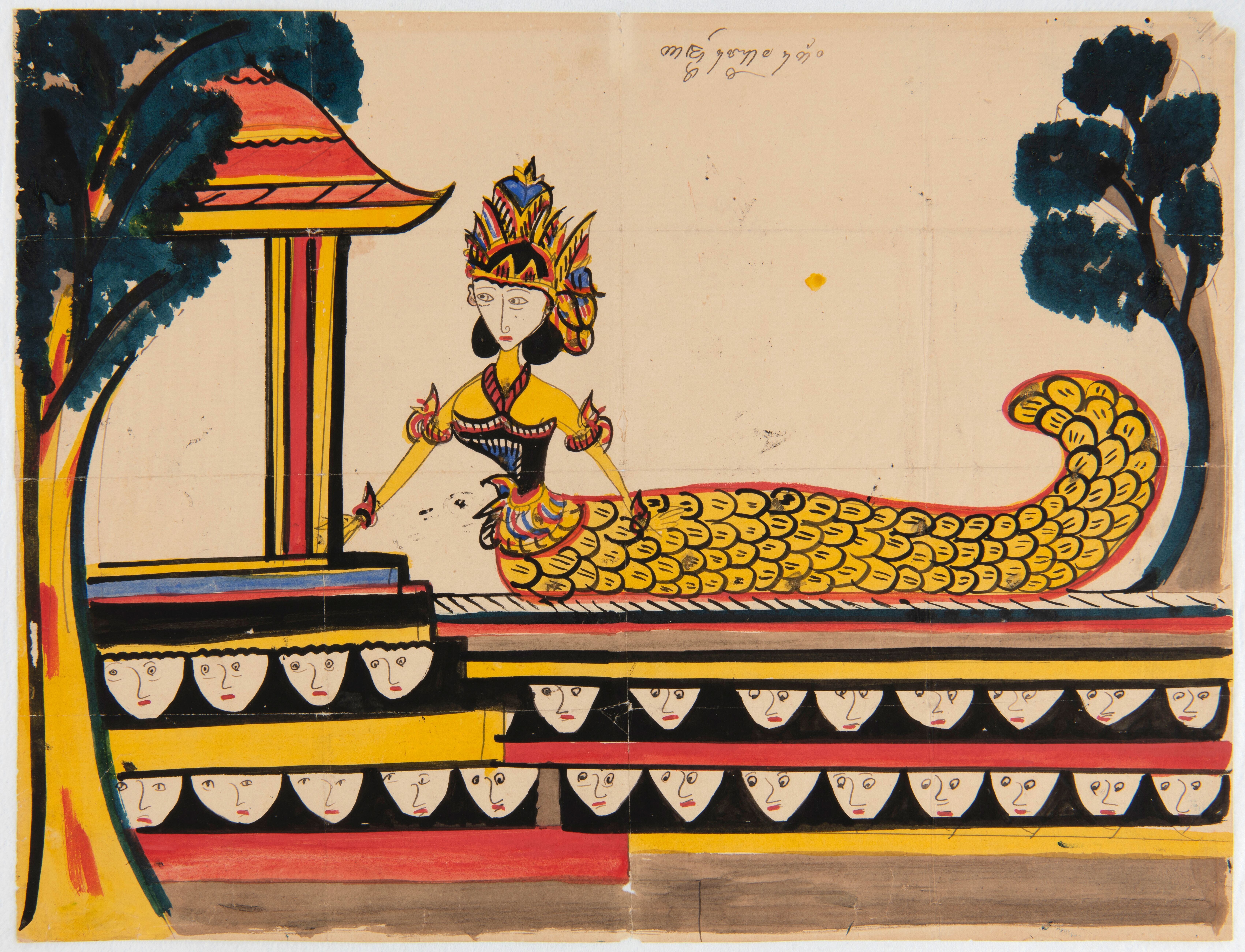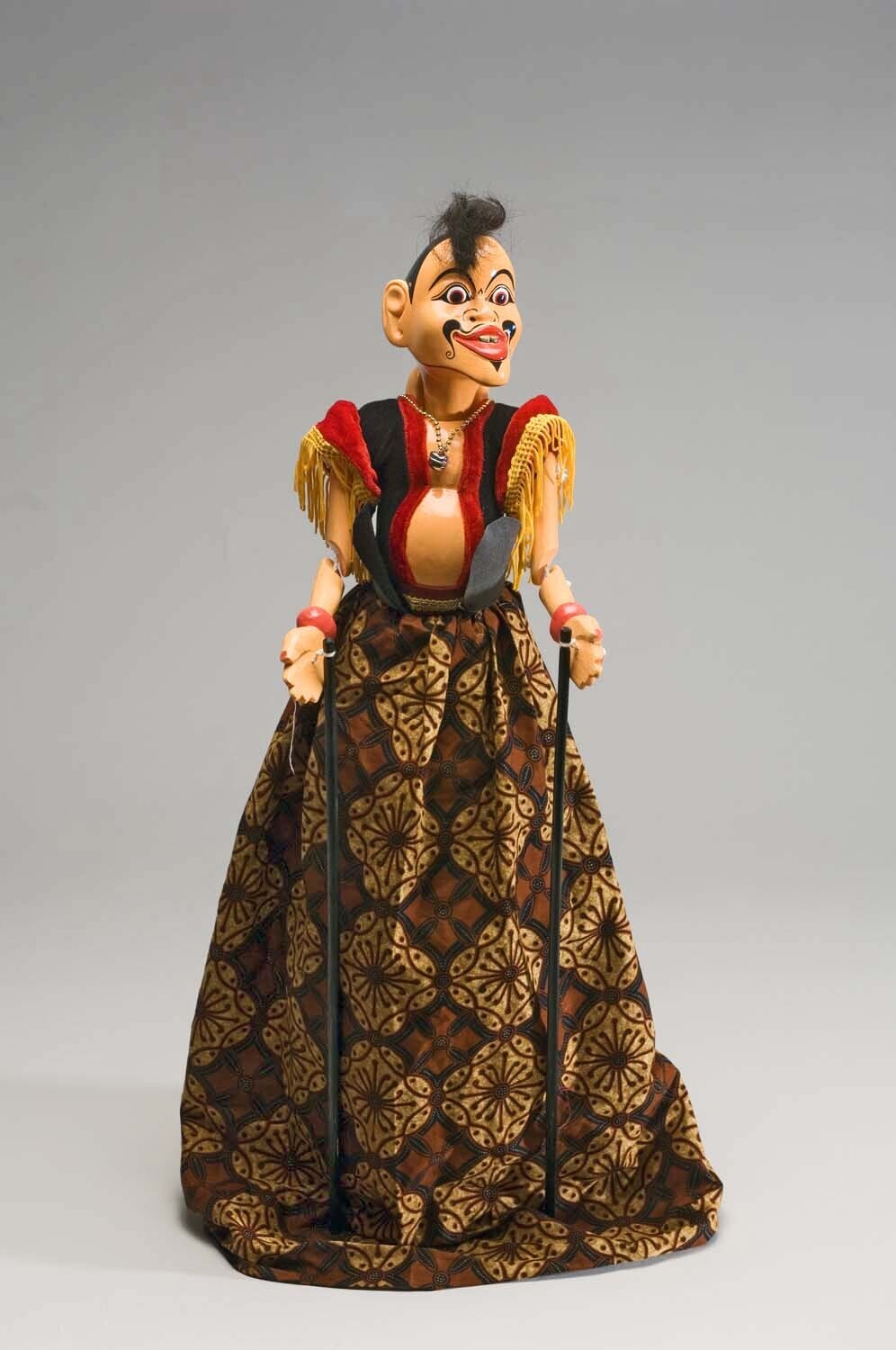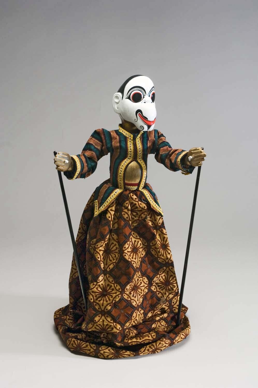 Ovalen messing bord met de wajangfiguren Raja Sajada...