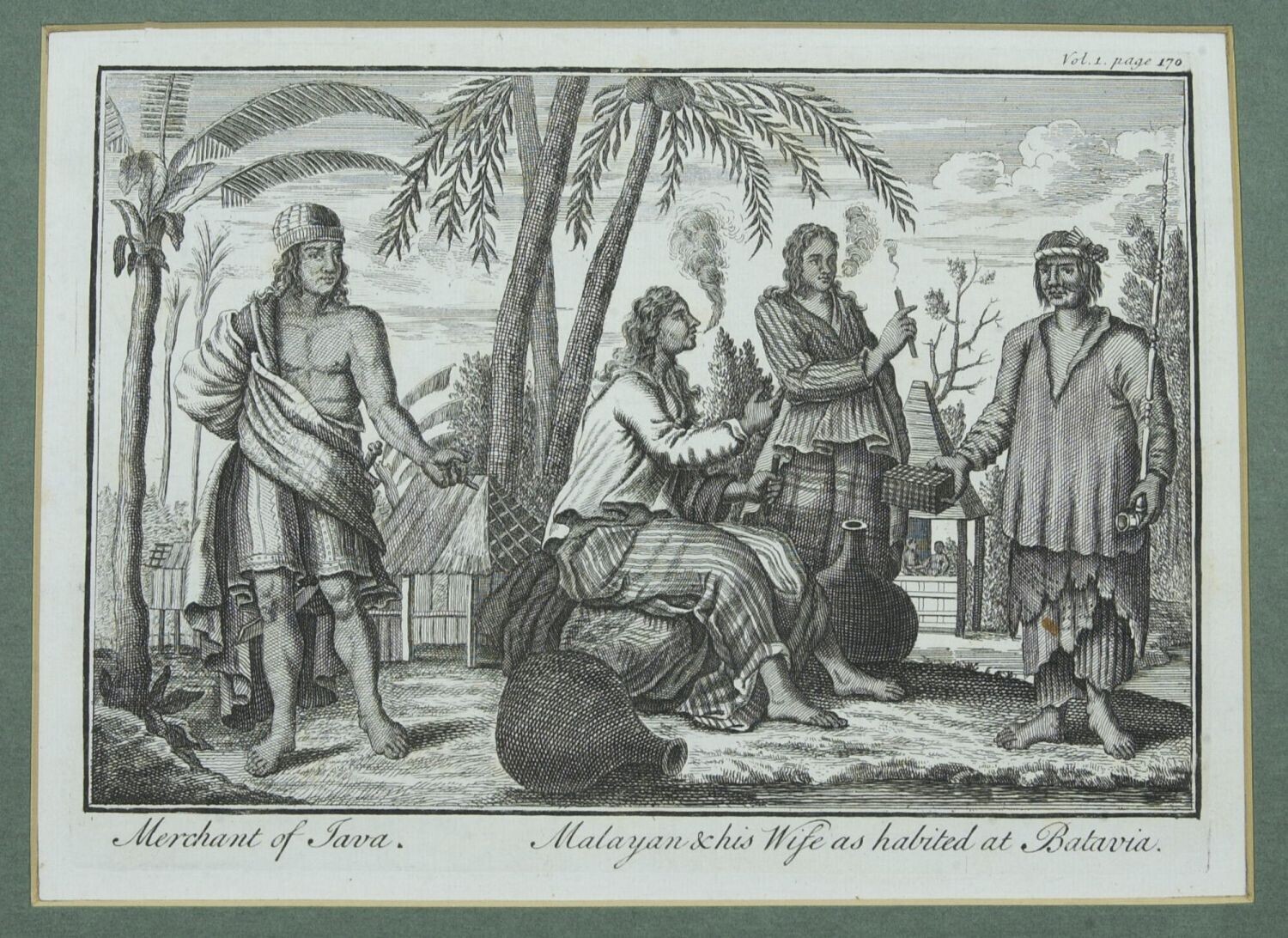Engelse gravure 'Merchant of Java. Malayan & his wif...