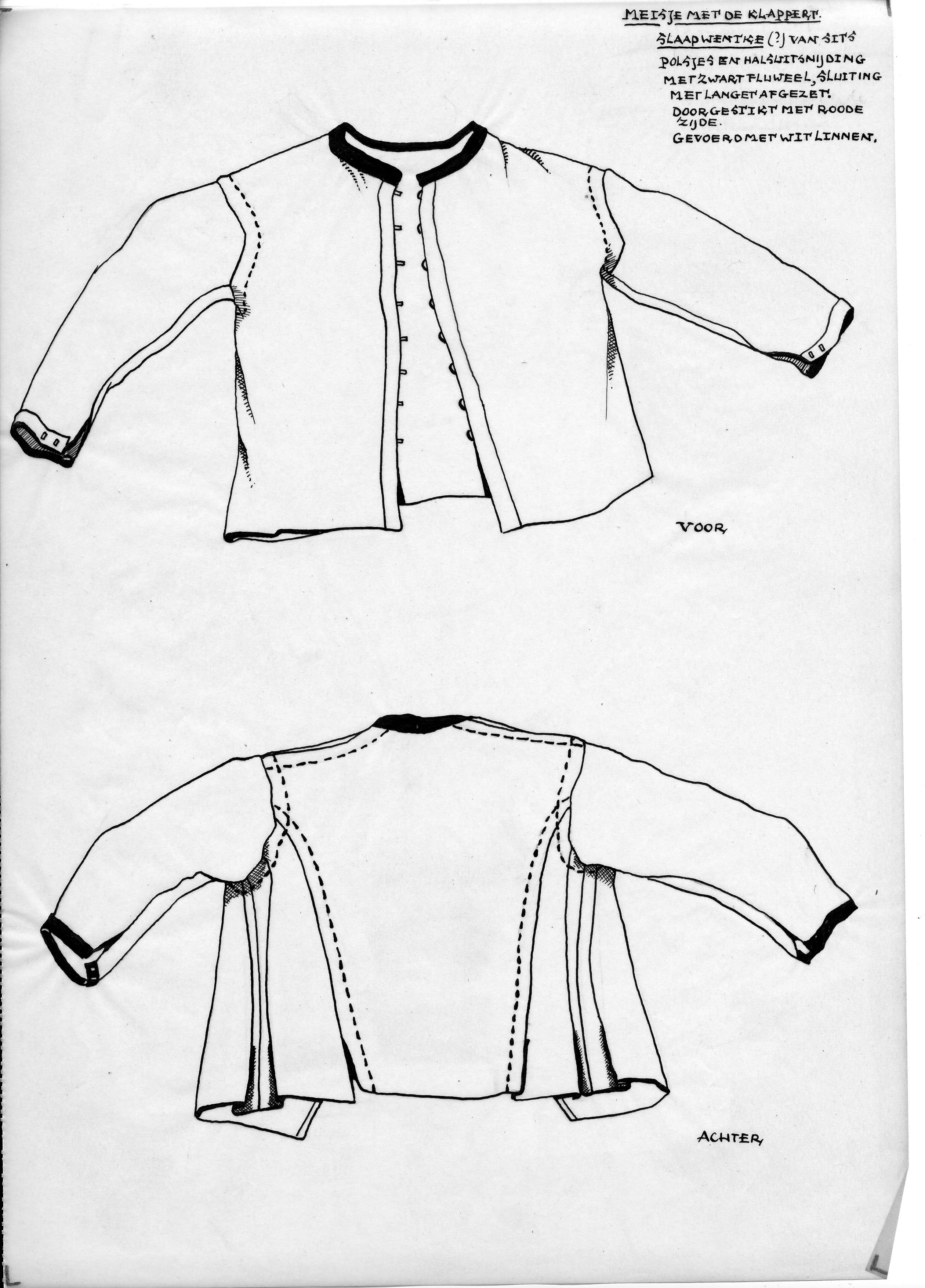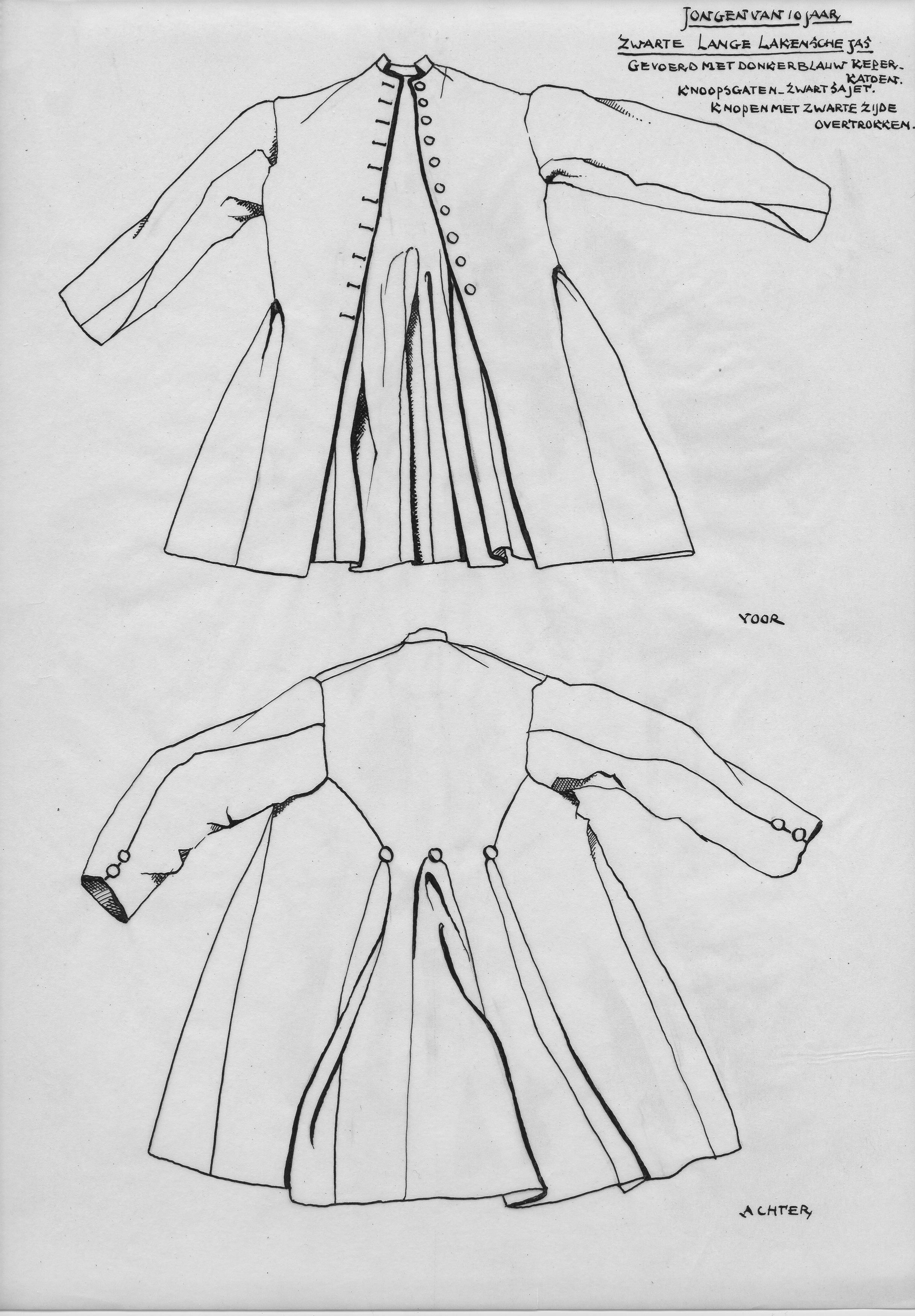 Tekening van een zwarte lakense jas voor jongen van ...