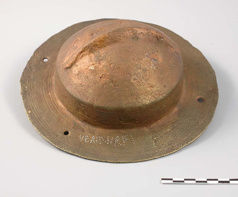 Schildknop van brons uit de Romeinse tijd, met graffito
