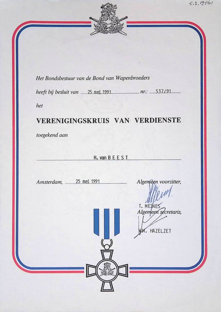 Toekenning Verenigingskruis van Verdienste Bond van ...