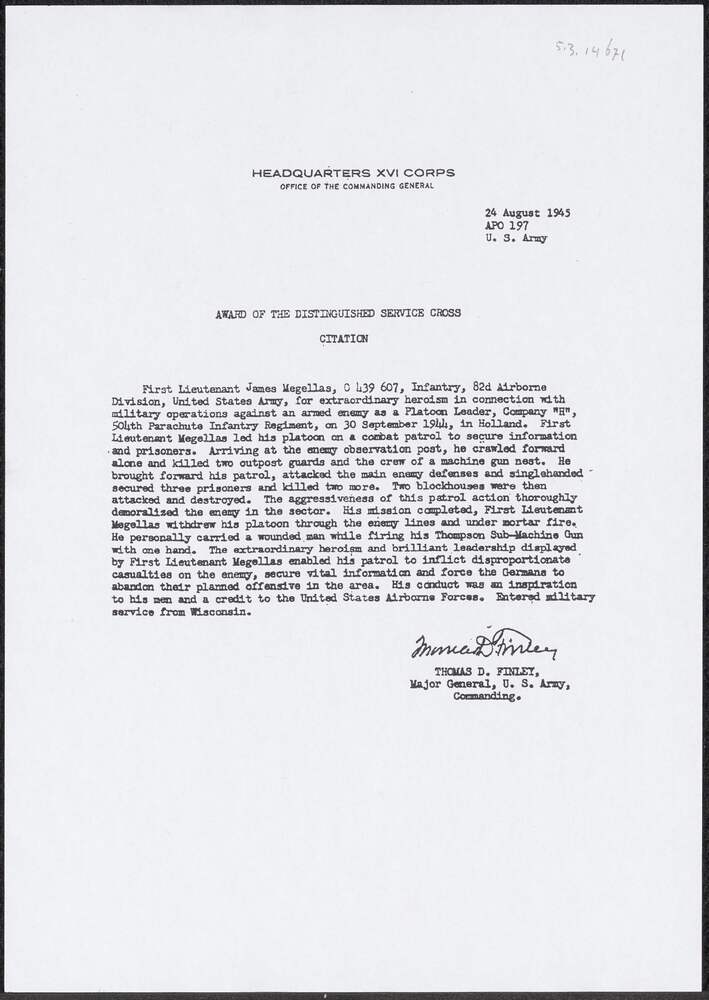 Brief over toekenning Distinguished Service Cross aa...