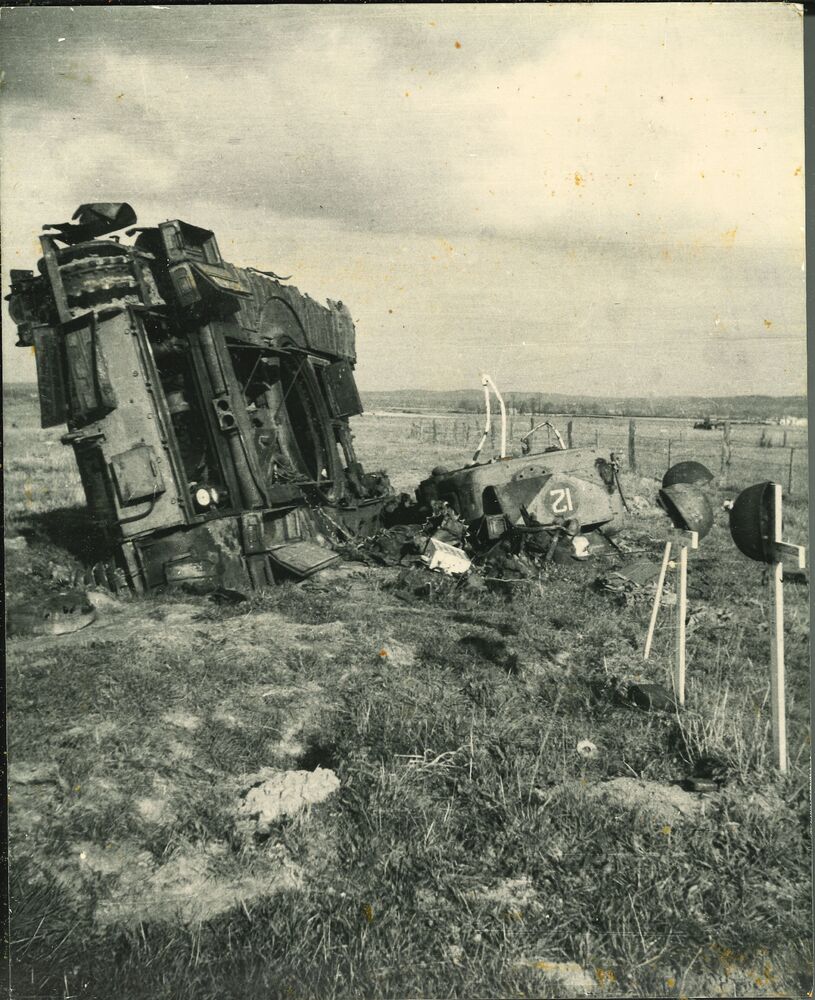 Geallieerde militaire voertuig stuk geschoten langs ...