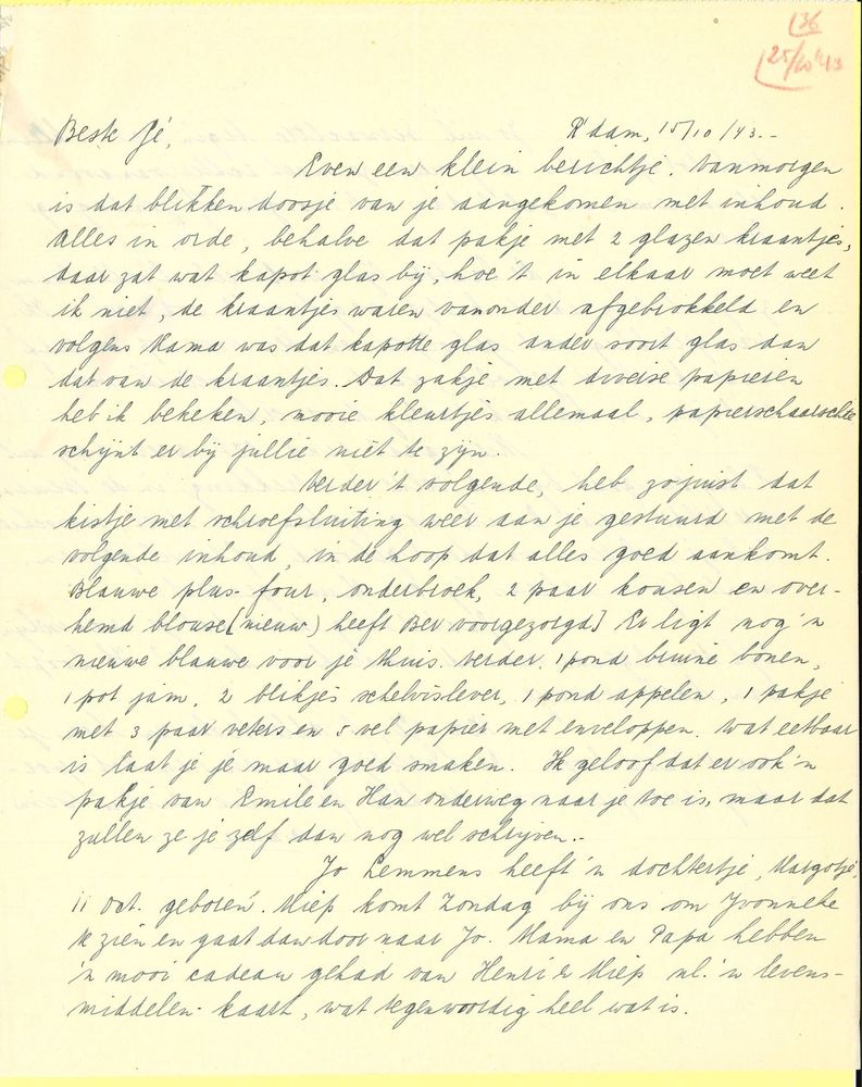 Brief van Annie in Rotterdam aan Gé Verbeek in Waten...