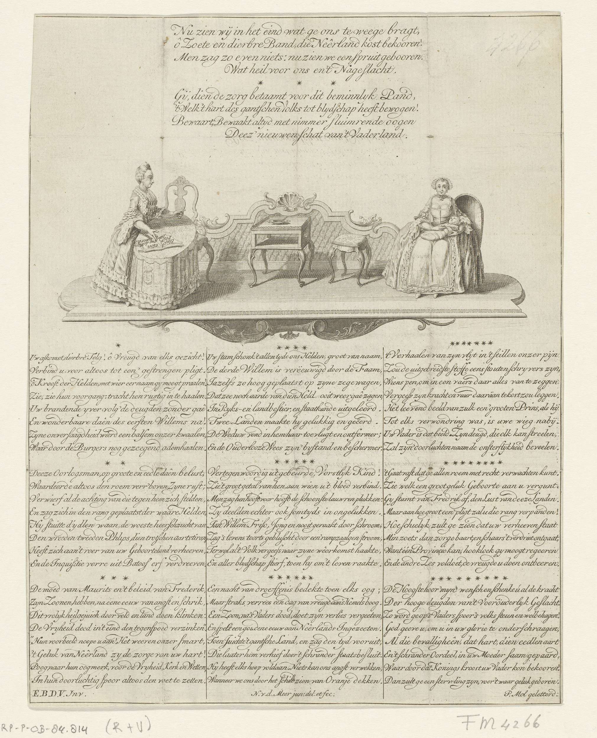 Vouwprent met allegorie op de geboorte van prins Wil...