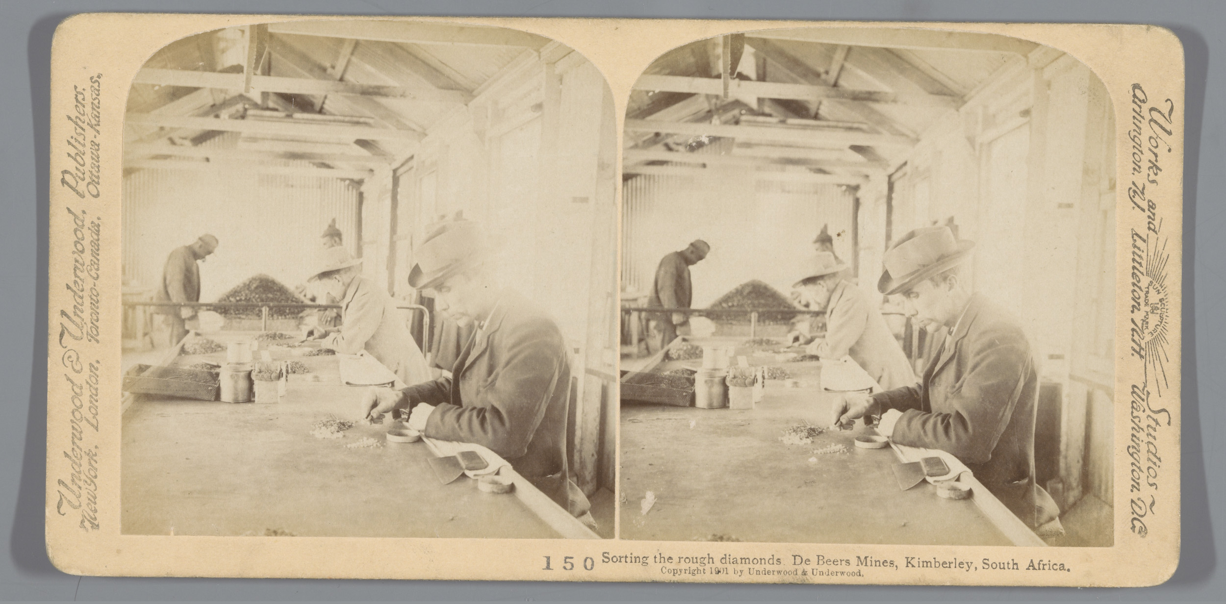 Diamantsorteerders bij een mijn van De Beers in Kimb...
