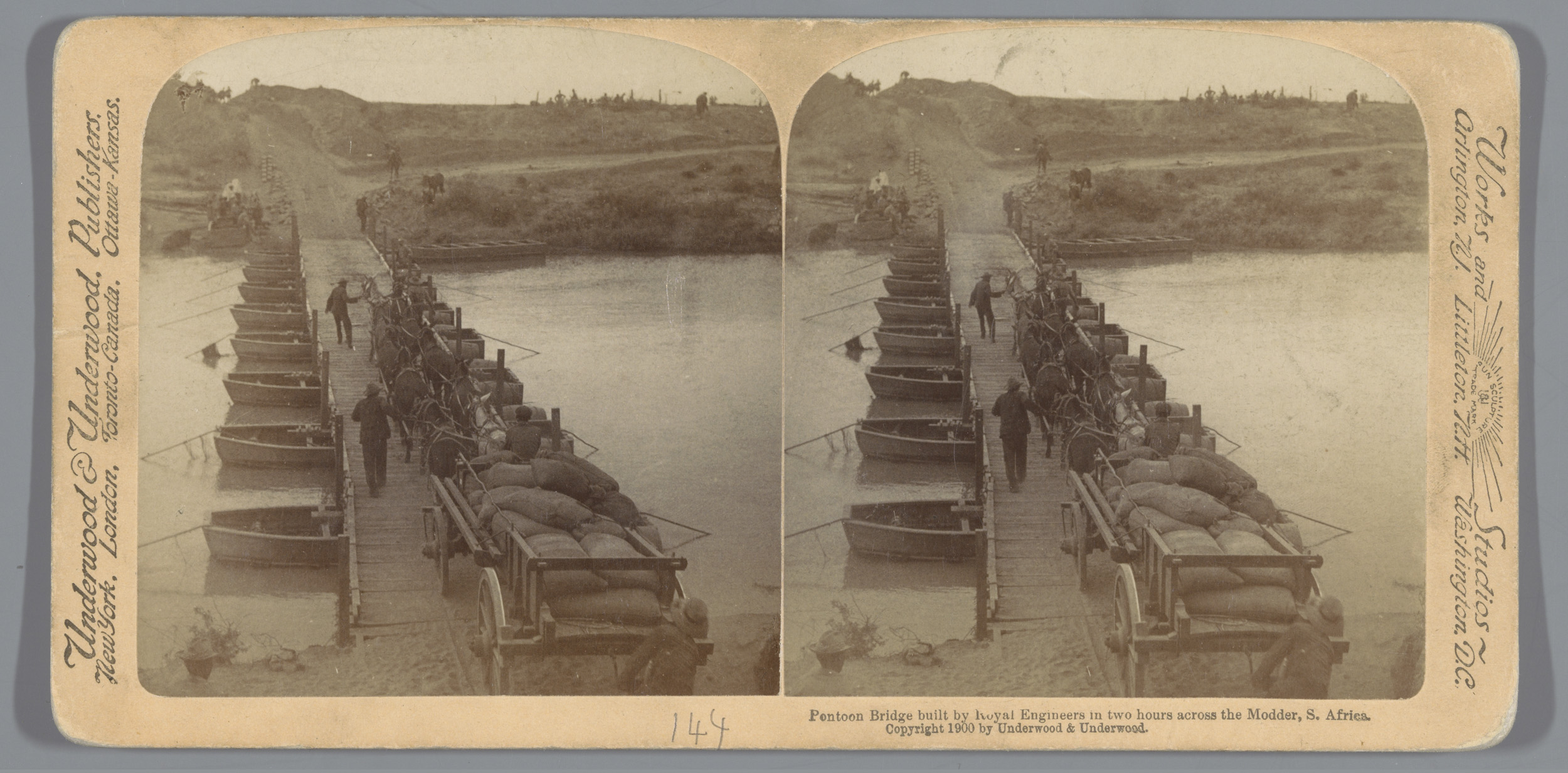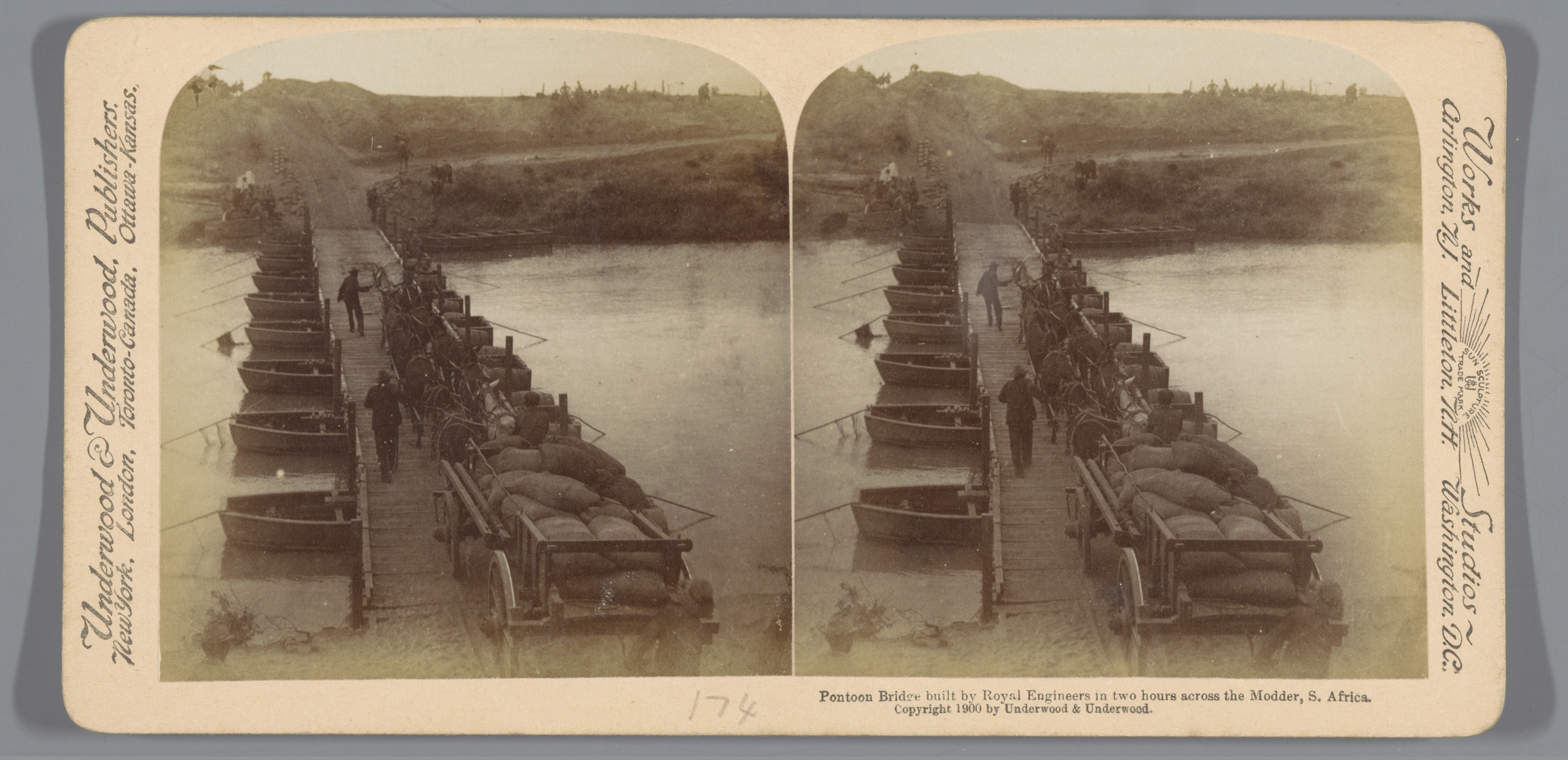 Gezicht op een pontonbrug over de Modderrivier