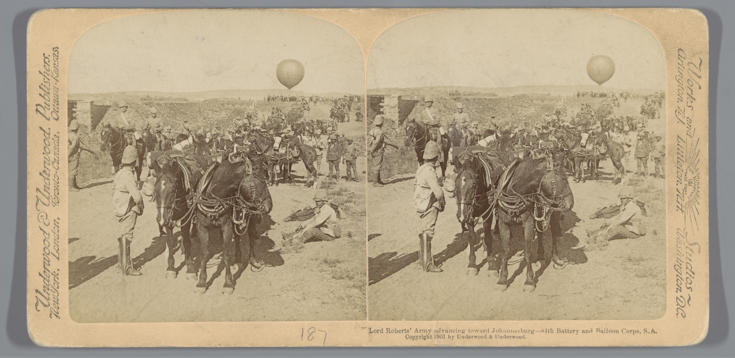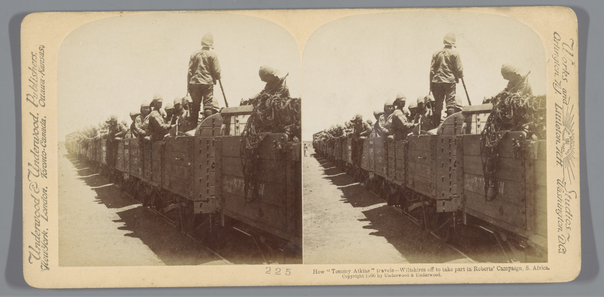 Britse soldaten in een open treinwagon in Zuid-Afrika