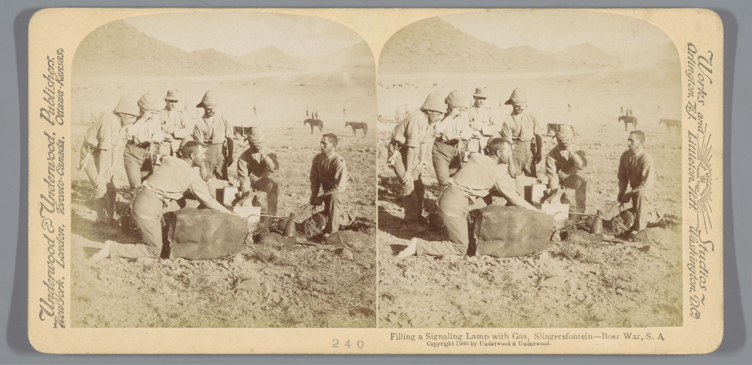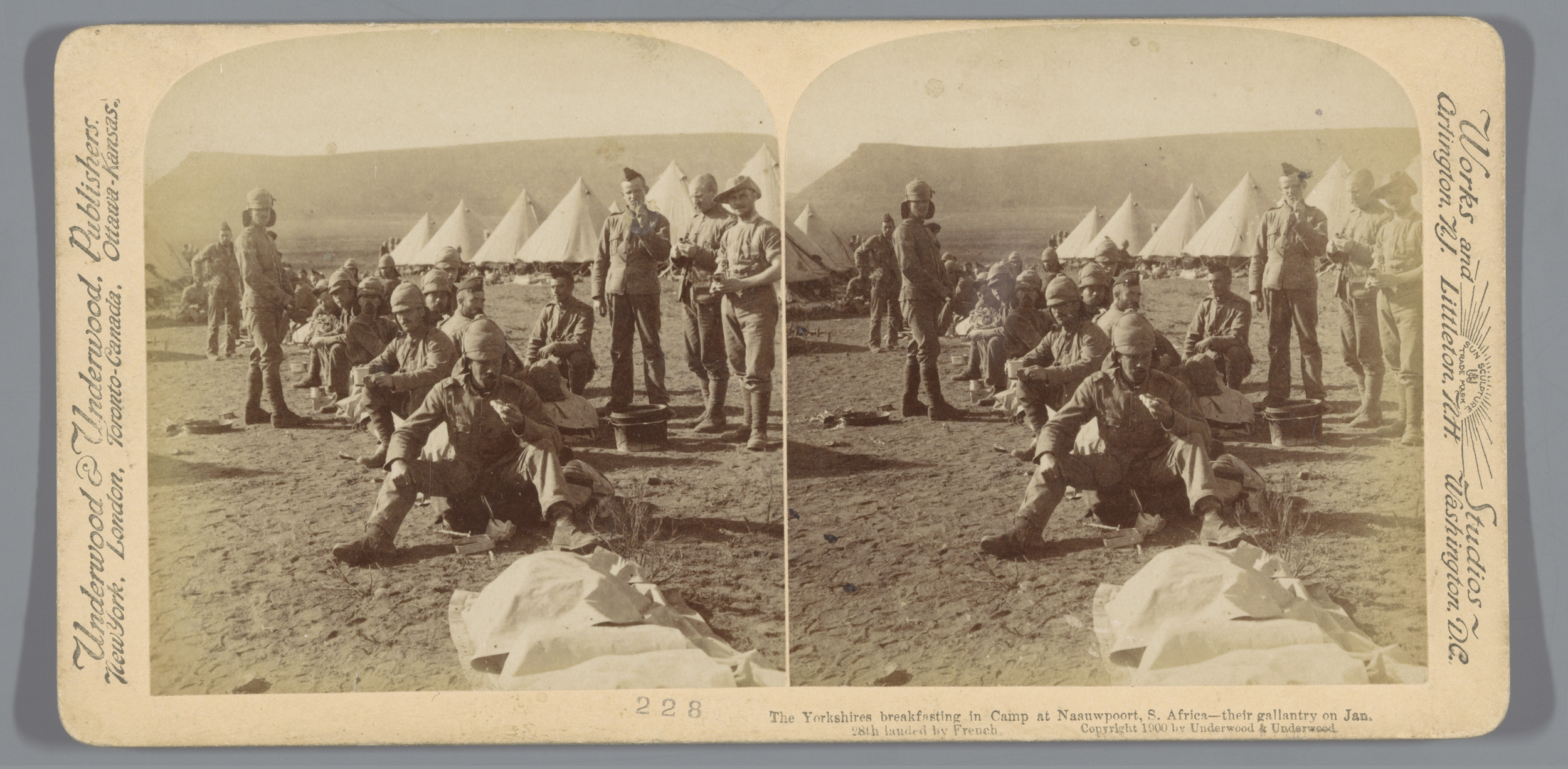 Britse soldaten ontbijten in hun kamp bij Naauwpoort...