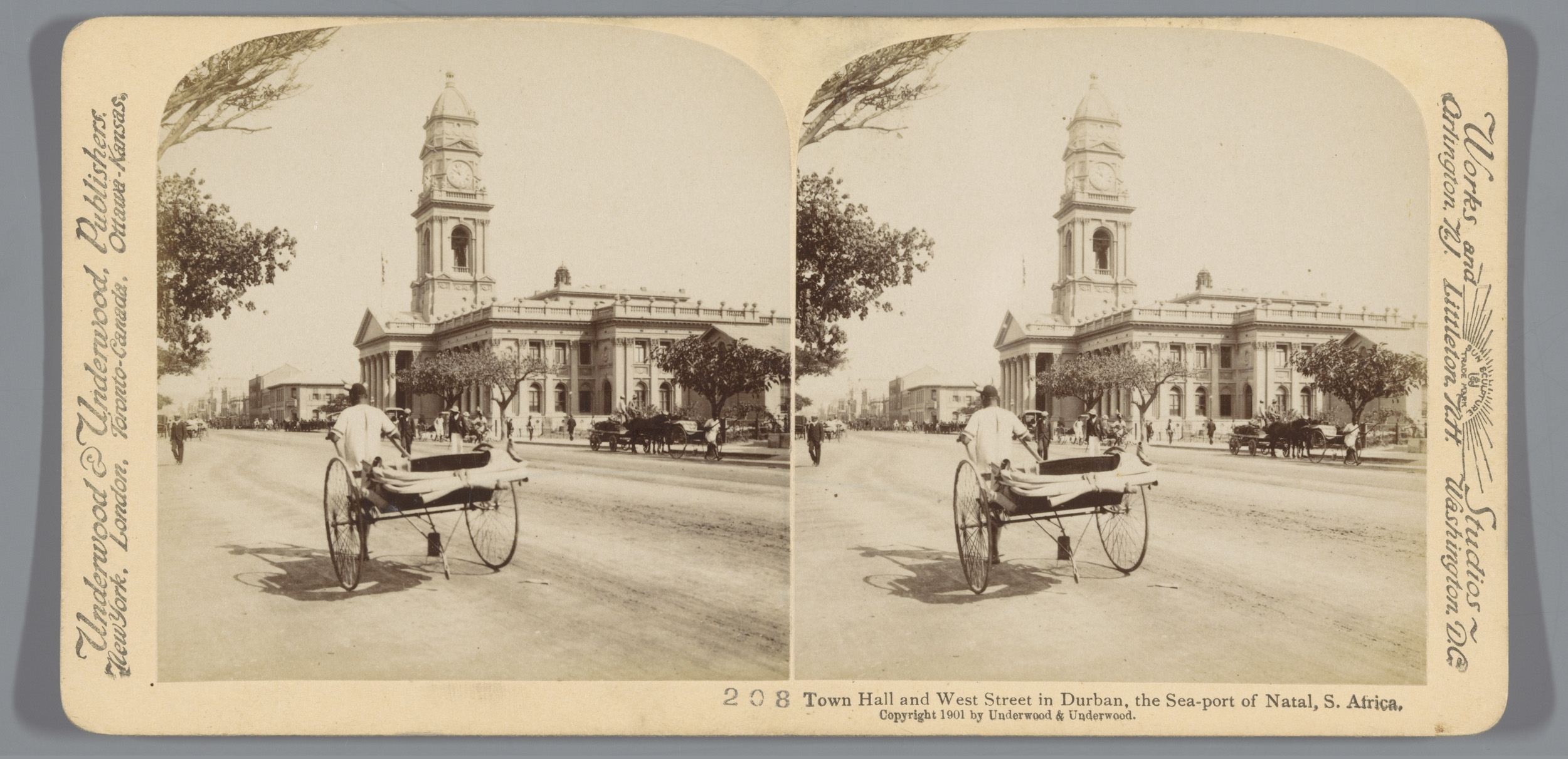 Gezicht op West Street met het stadhuis in Durban
