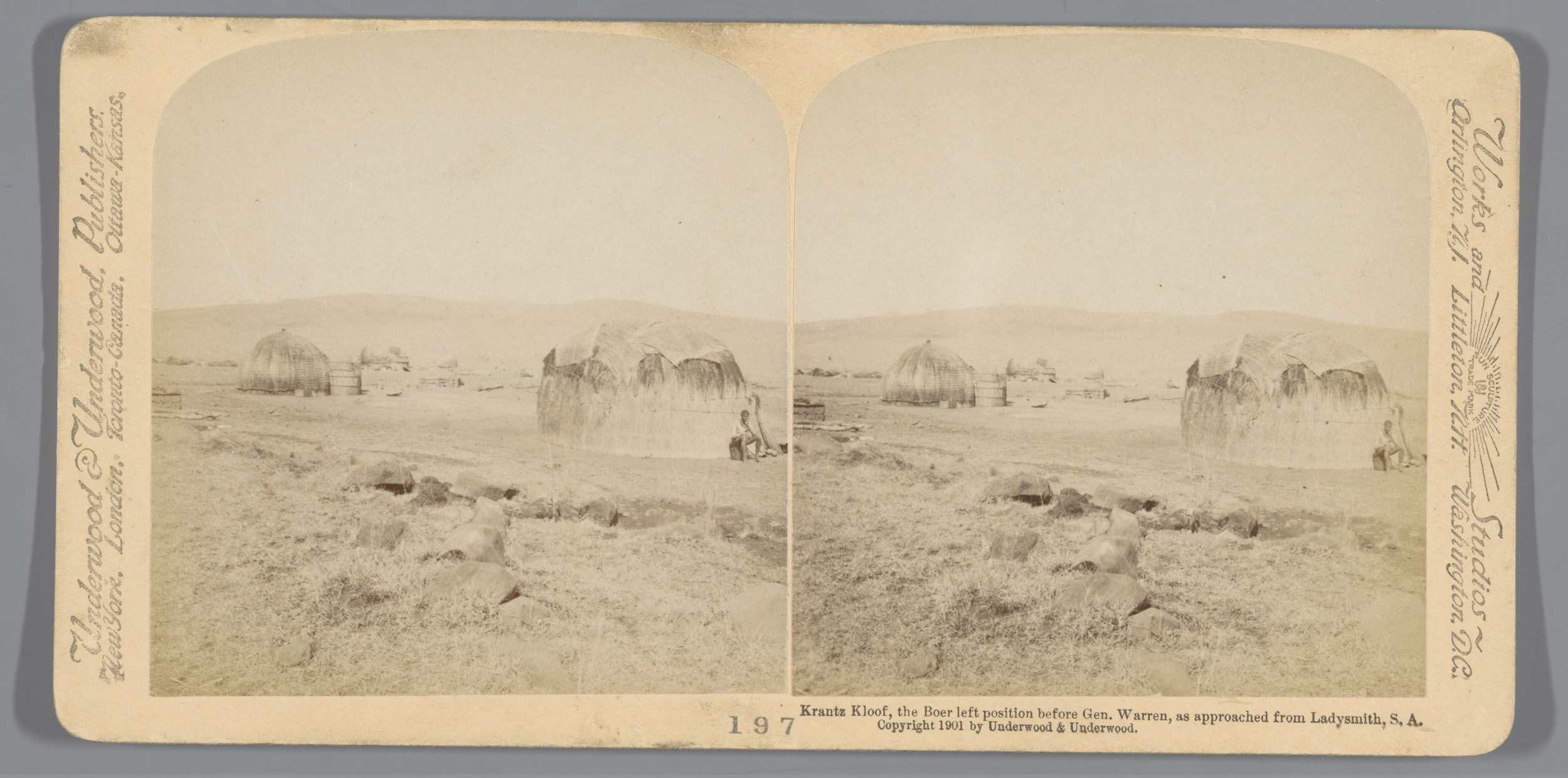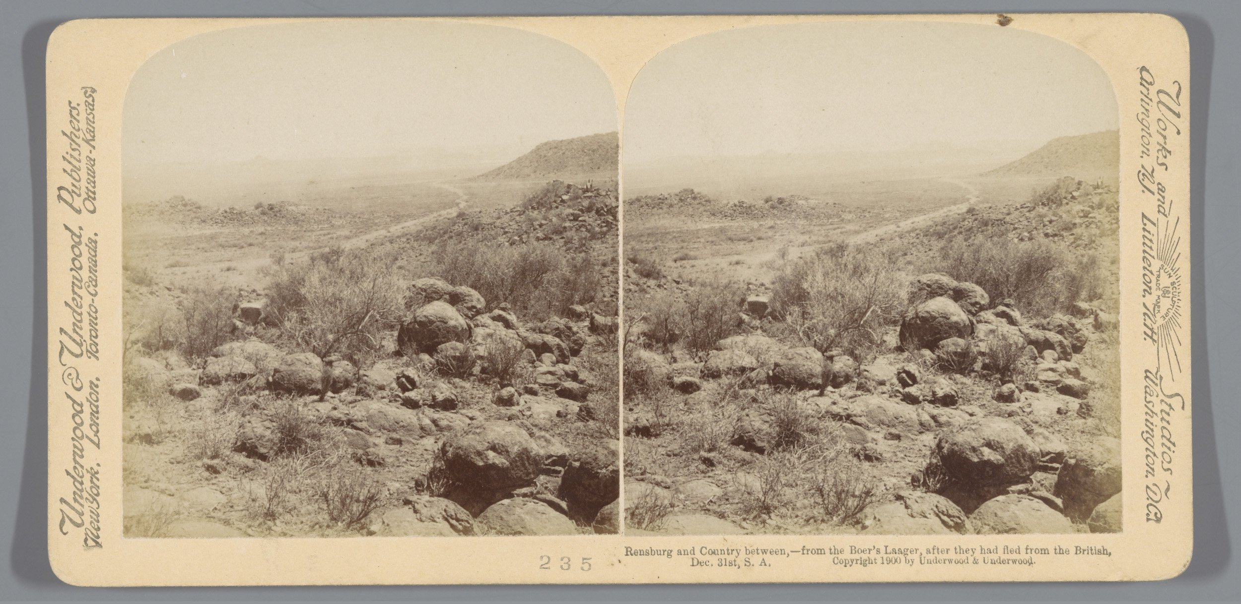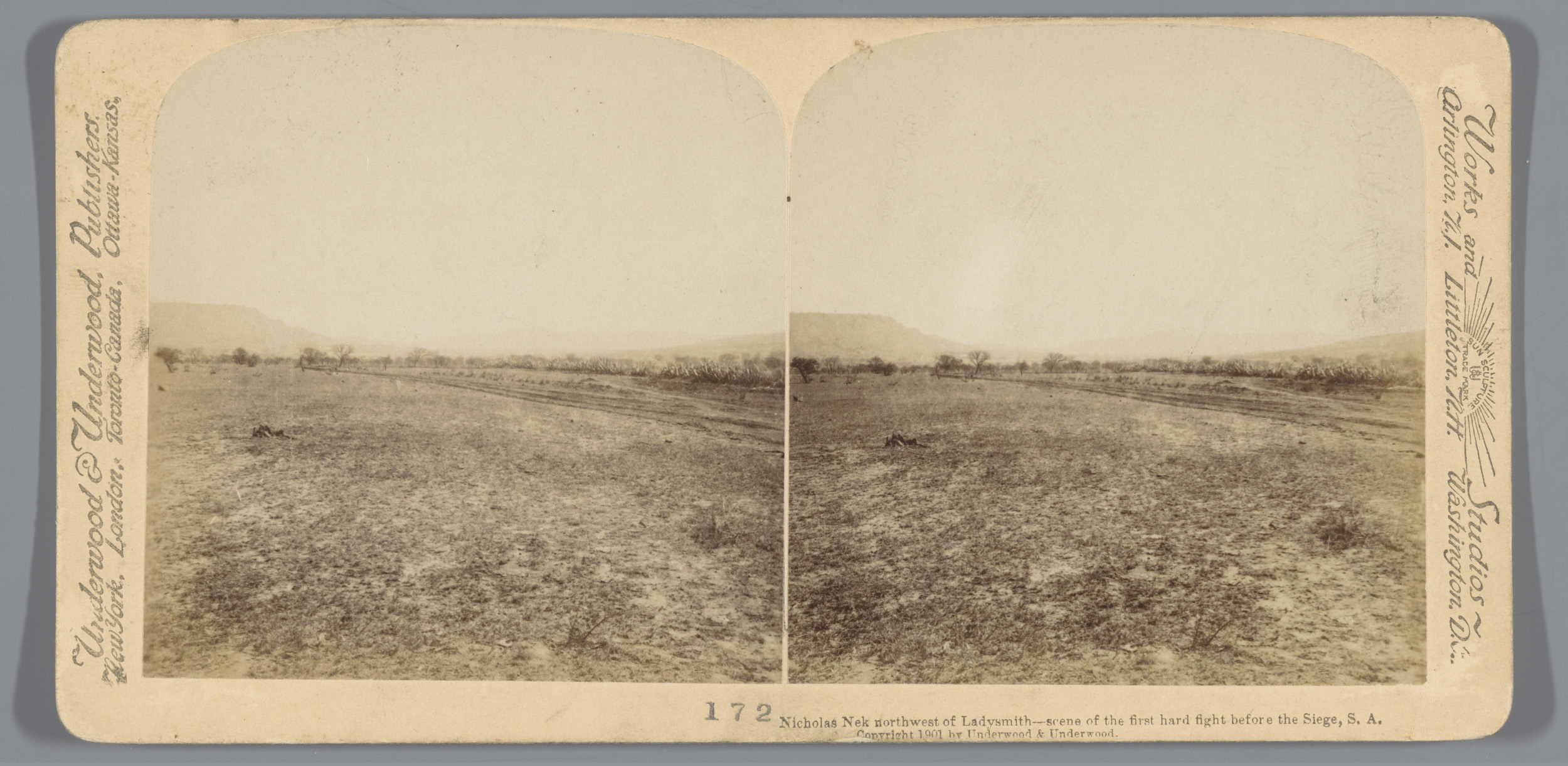 Gezicht op een vlakte in Zuid-Afrika waar is gevocht...