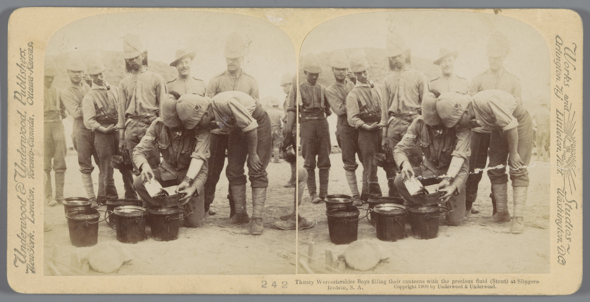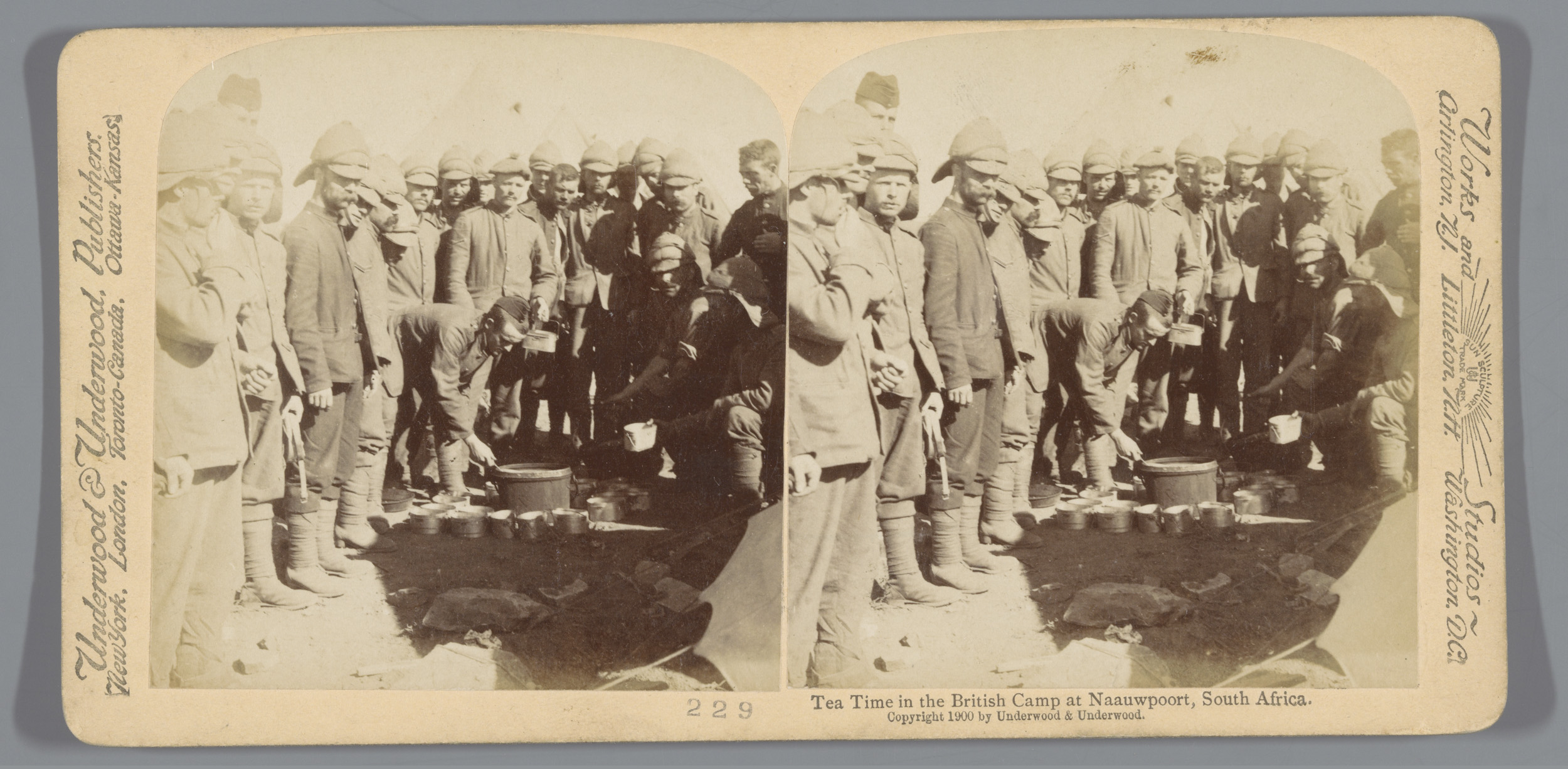 Britse soldaten drinken thee in hun kamp bij Naauwpo...