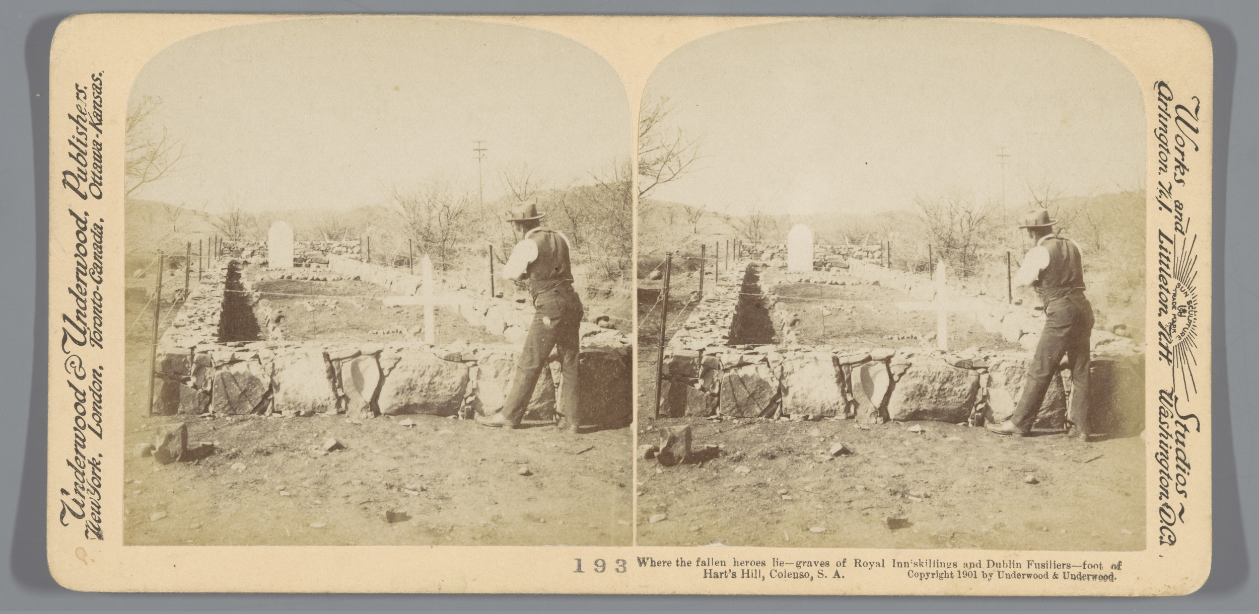 Gezicht op een begraafplaats op Spionkop in Natal