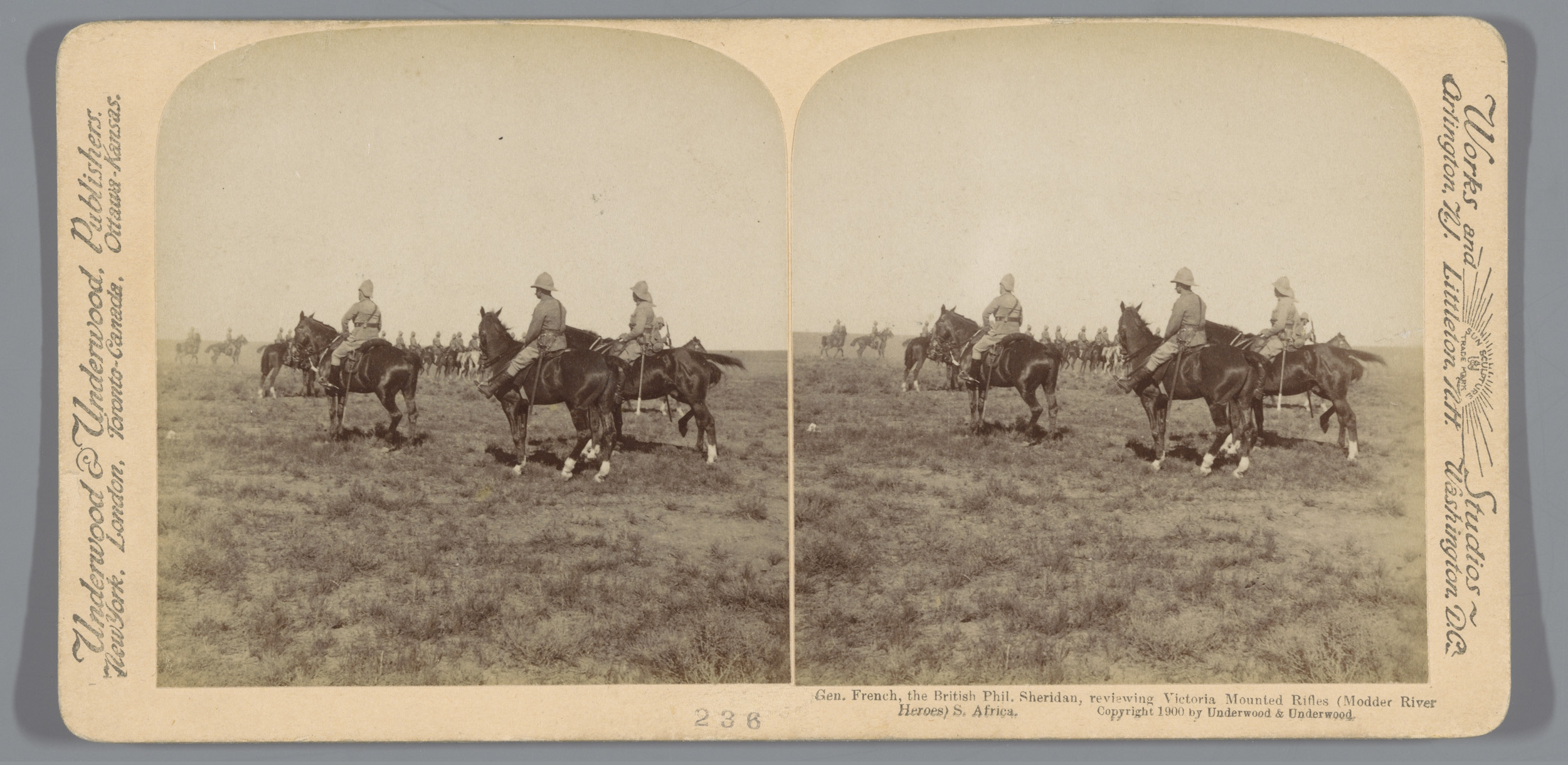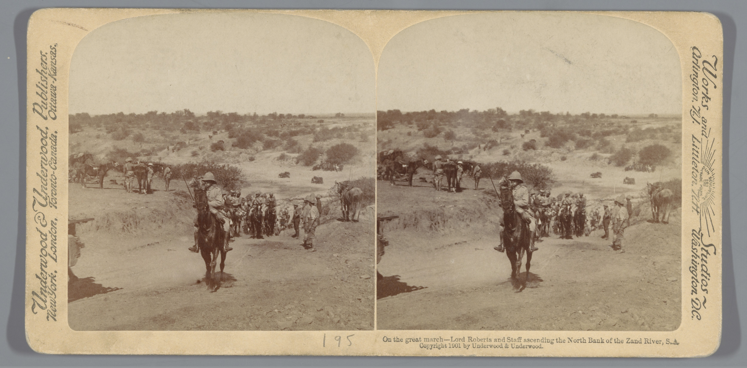 Frederick Sleigh Roberts met zijn personeel te paard...