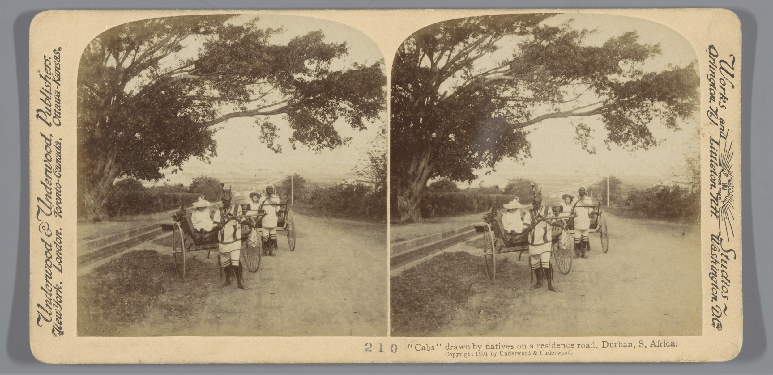 Twee handkarren met meisjes erop op een weg in Durban