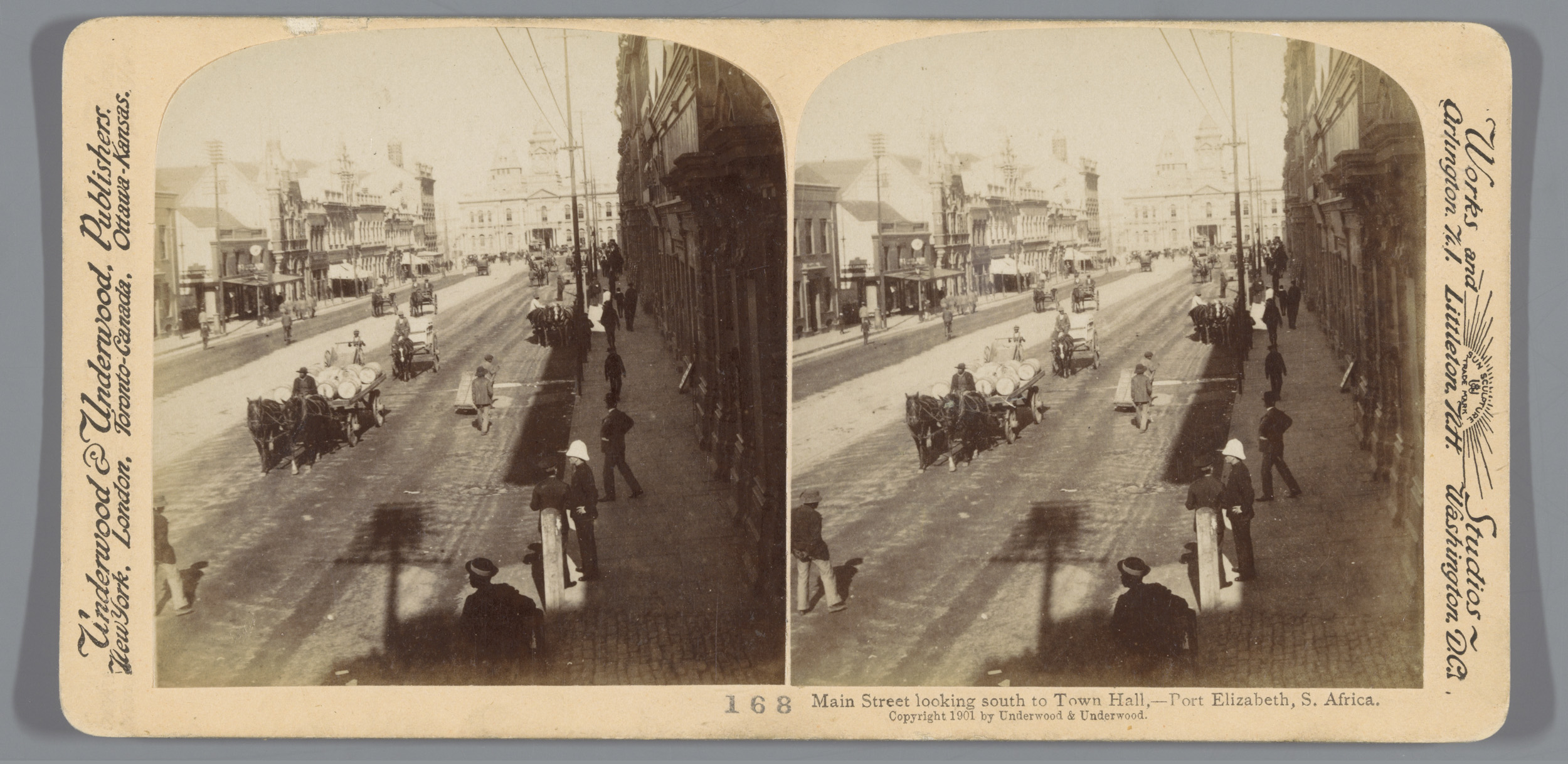 Gezicht op Main Street en het stadhuis in Port Eliza...