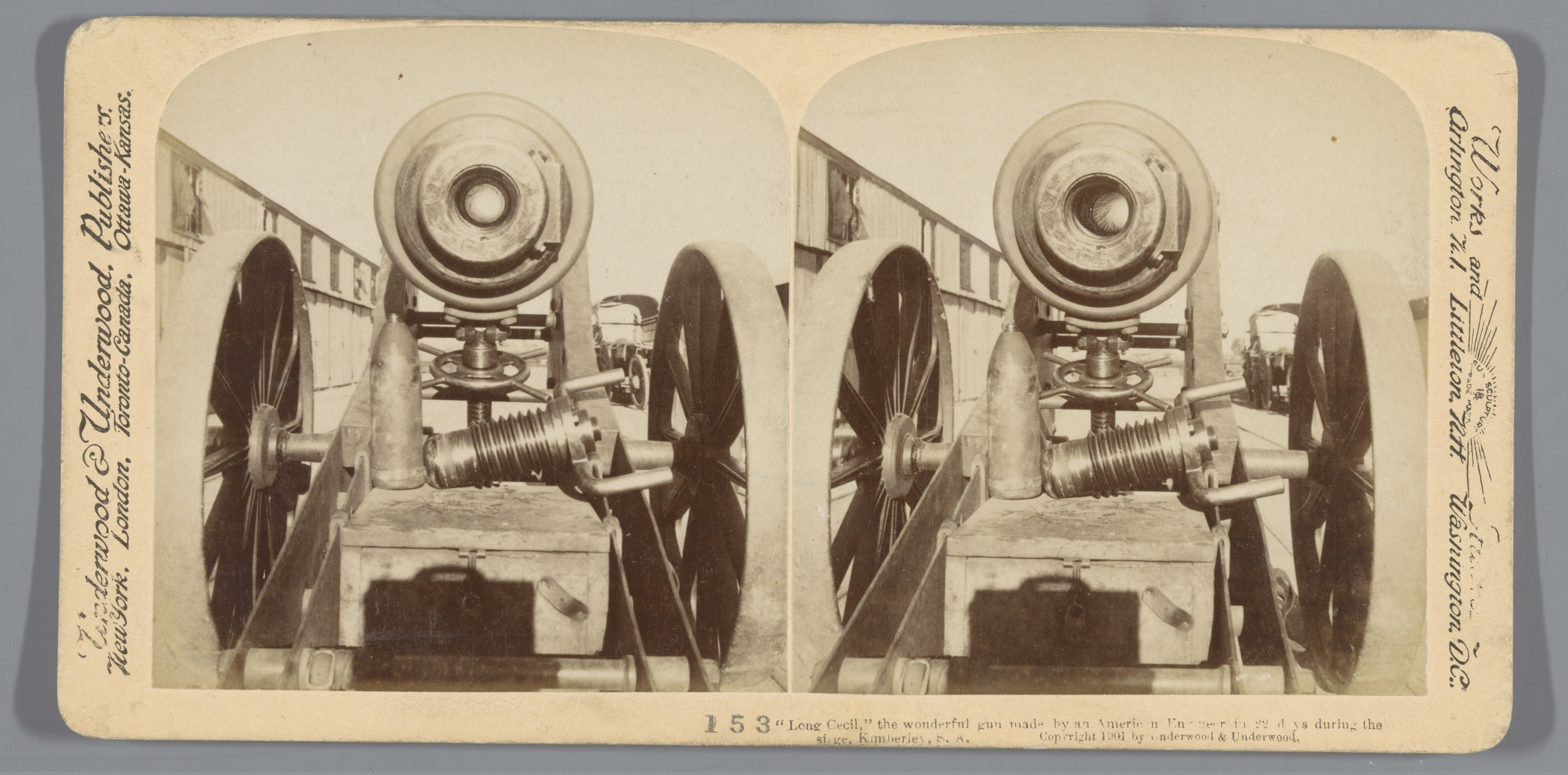Frontaal aanzicht van een Long Cecil-kanon in Kimberley