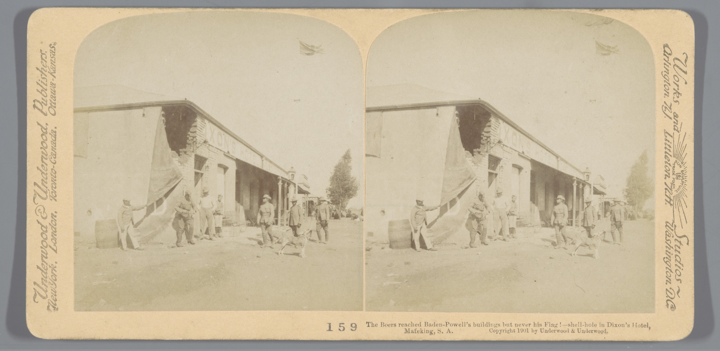 Gezicht op het beschadigde Dixon hotel, het hoofdkwa...