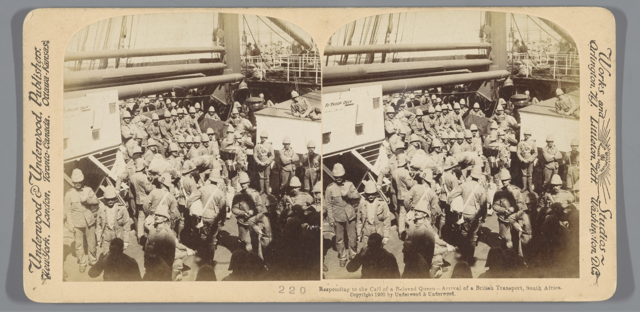 Britse soldaten op een schip in Zuid-Afrika