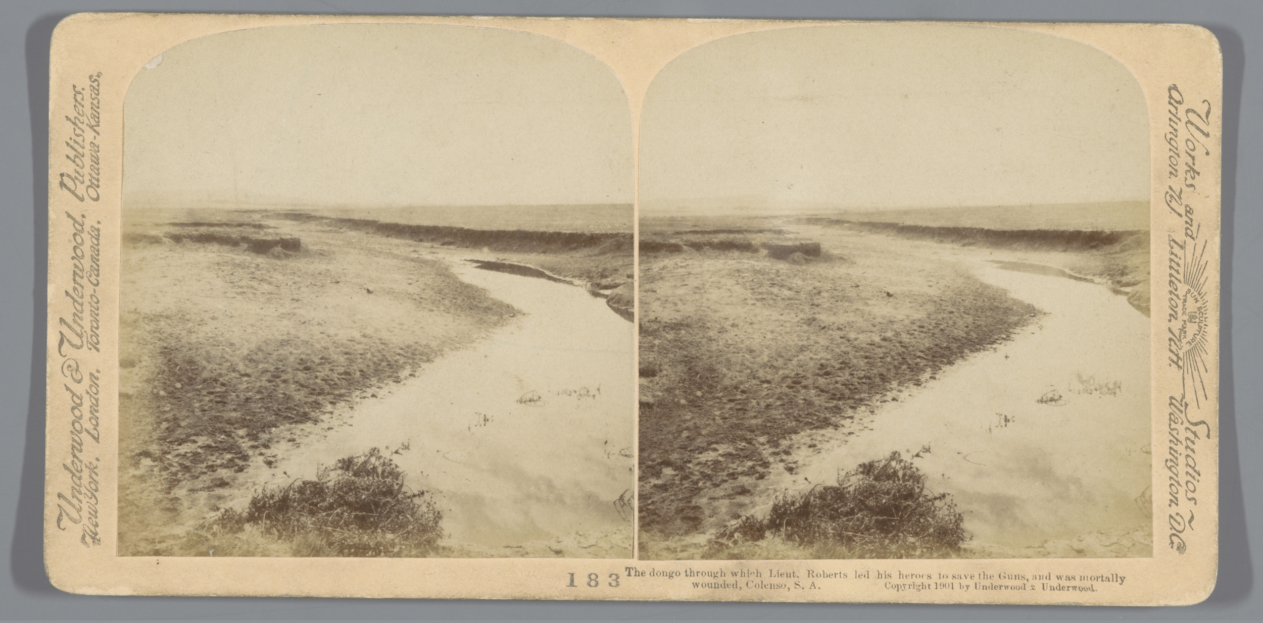 Gezicht op de plek bij Colenso waar Frederick Sleigh...