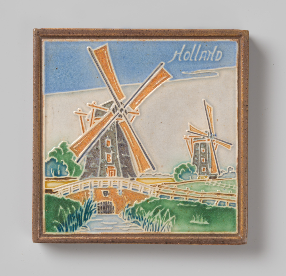 Tegel in transfer-techniek, met voorstelling: landsc...