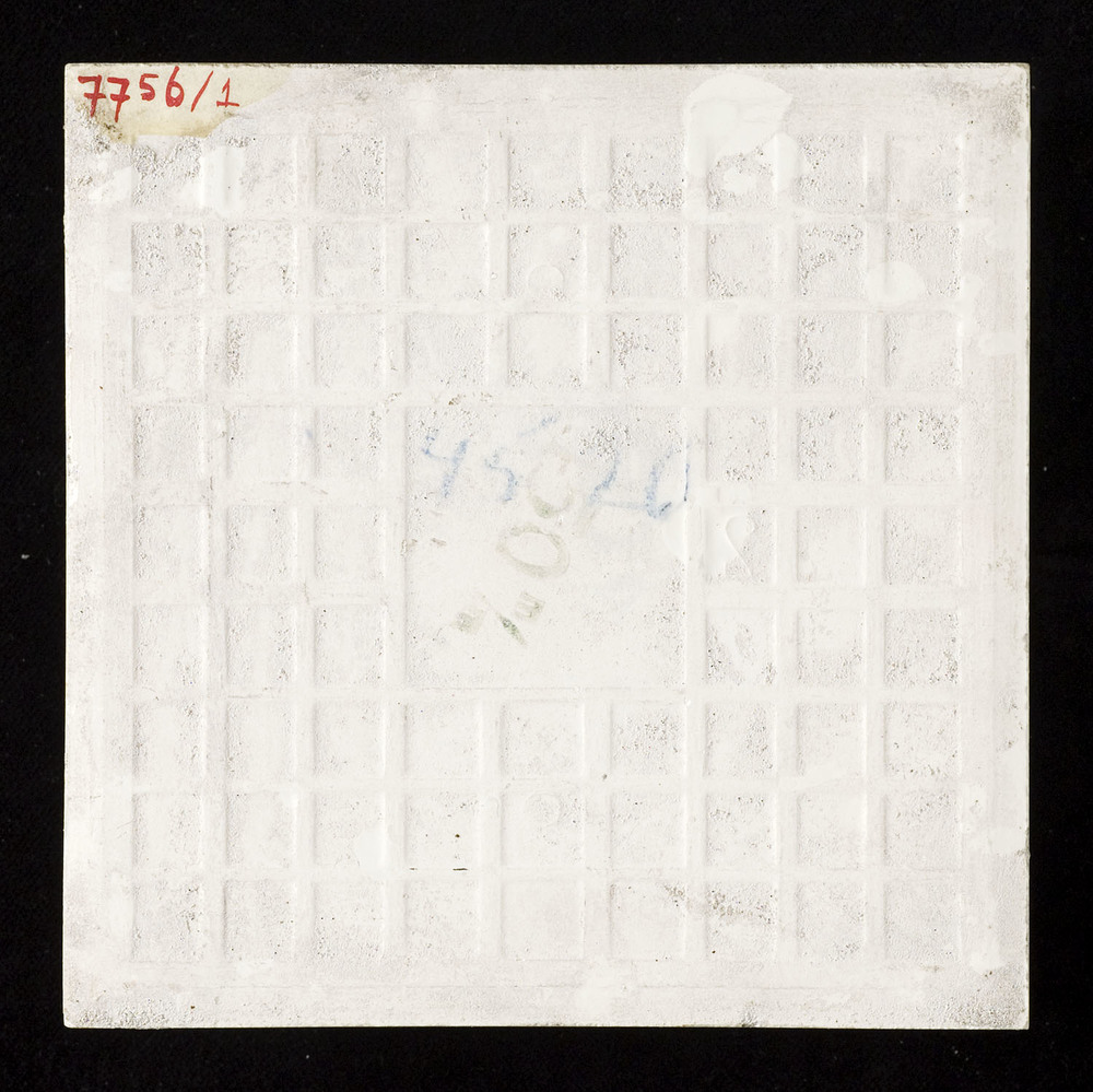 tegel van keramiek met tinglazuur, voorstellende: ru...