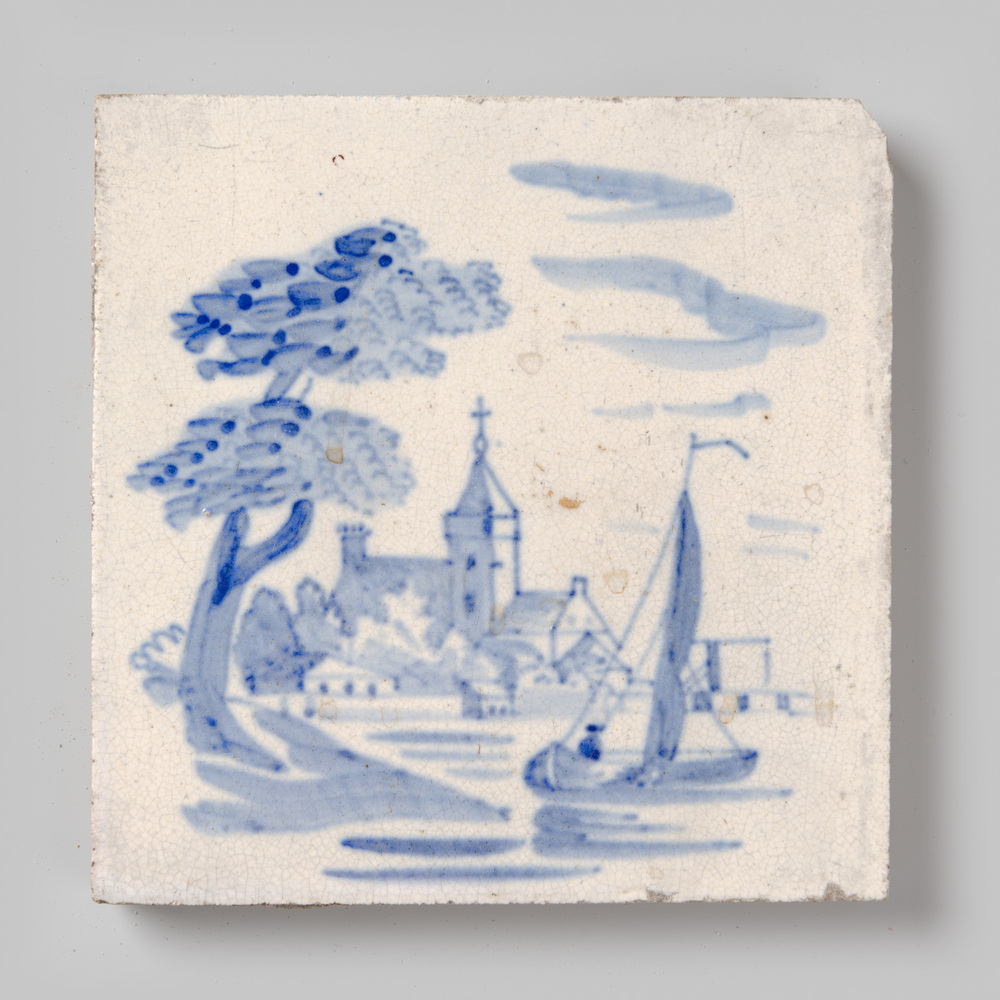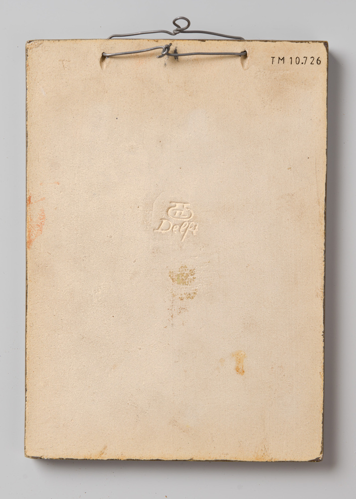 tegel van keramiek met tinglazuur, voorstellende: De...