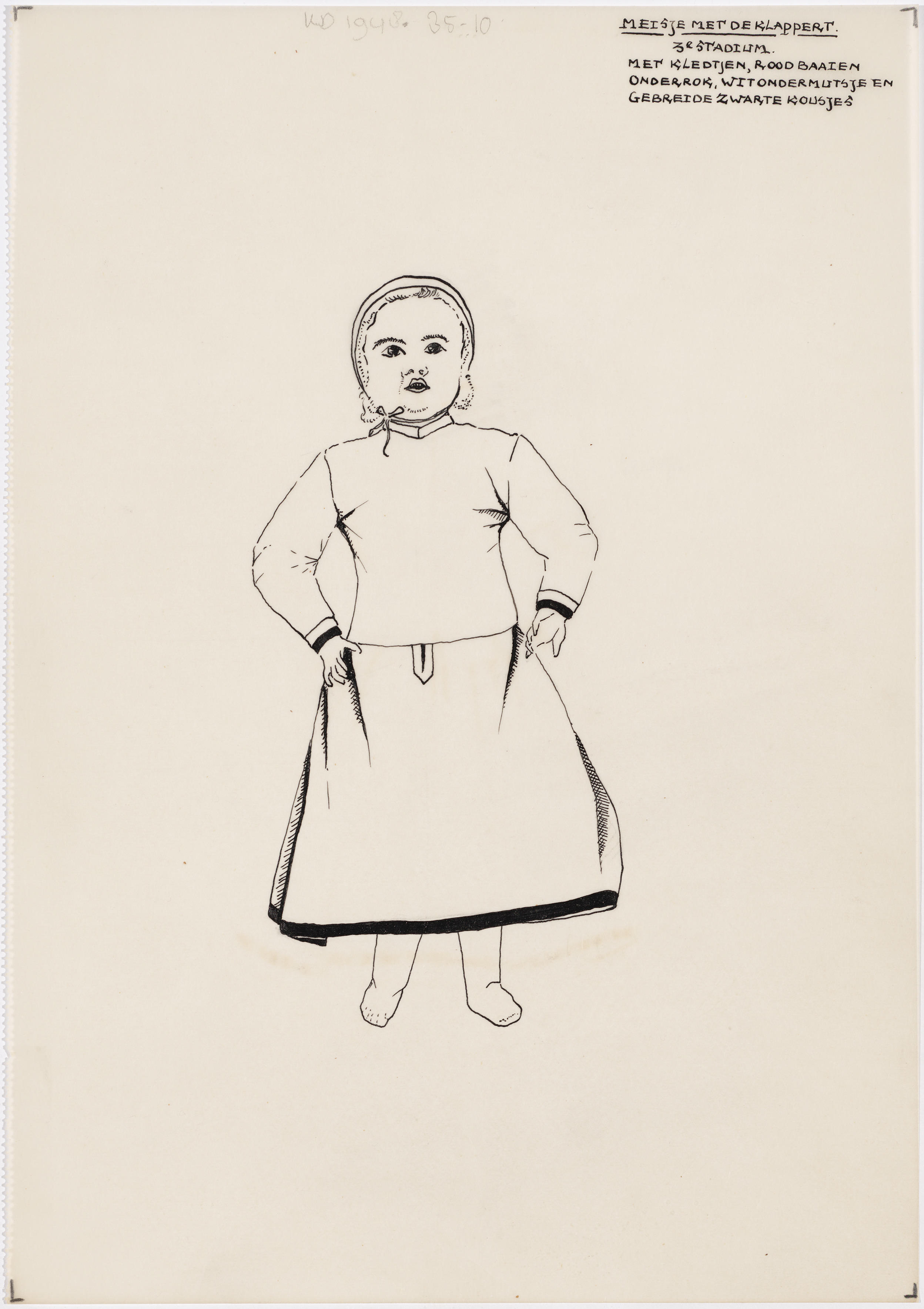 Meisje met de klappert, Hindeloopen (opmetingstekening)