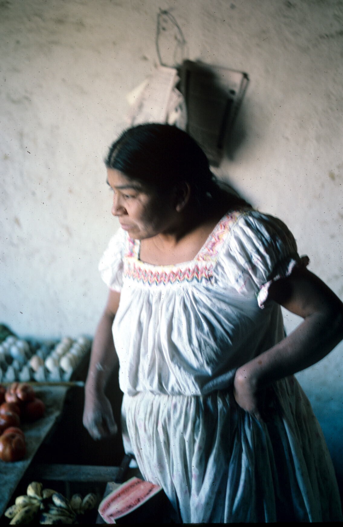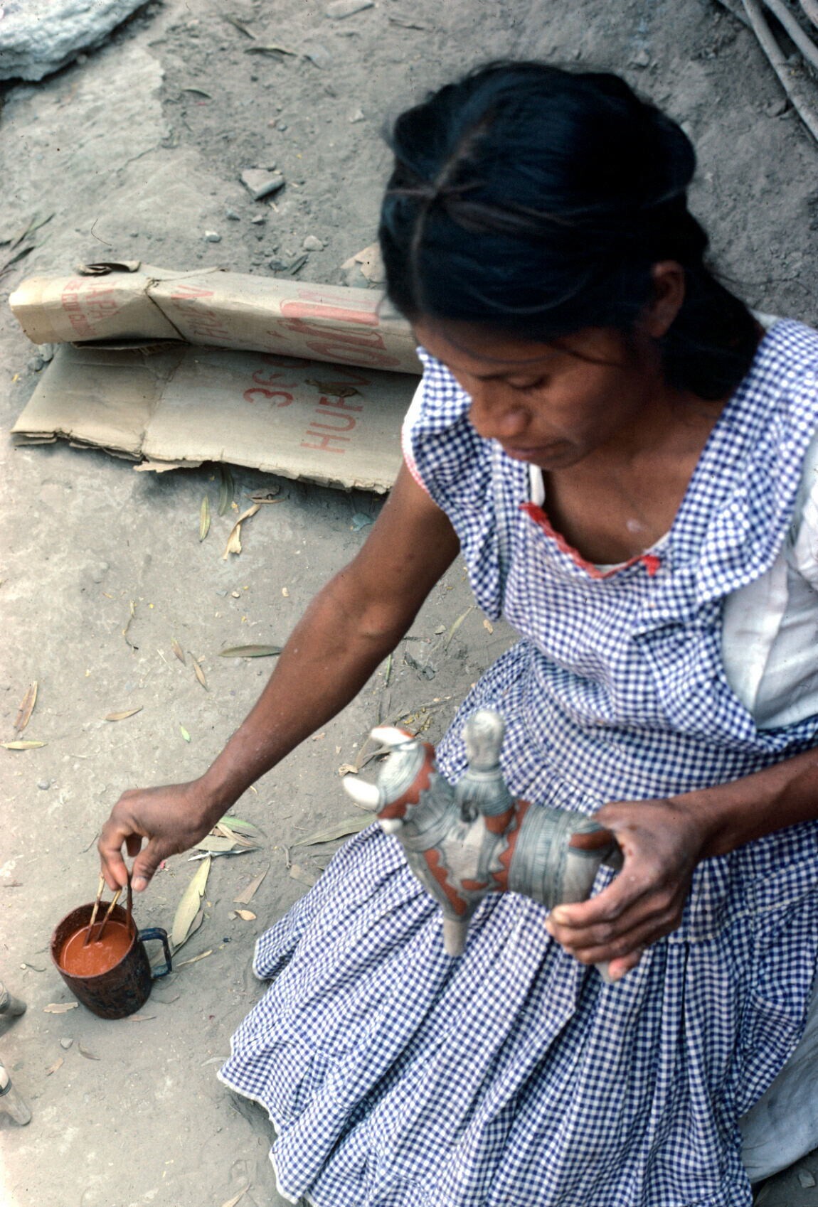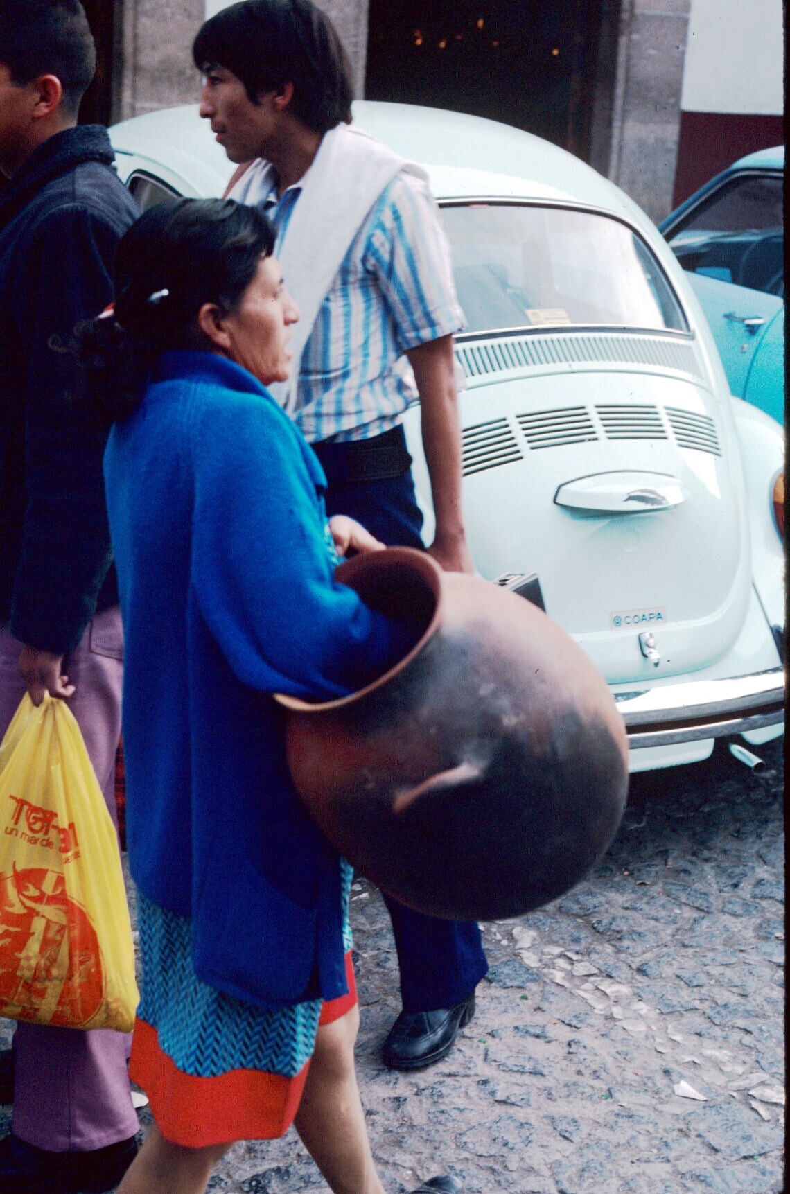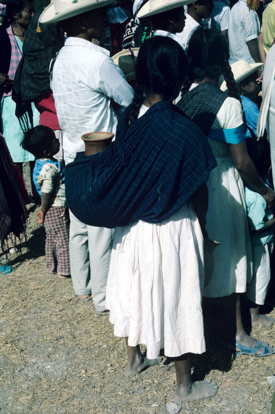 meisje, op rug gezien, met kruik in rebozo (omslagdoek)