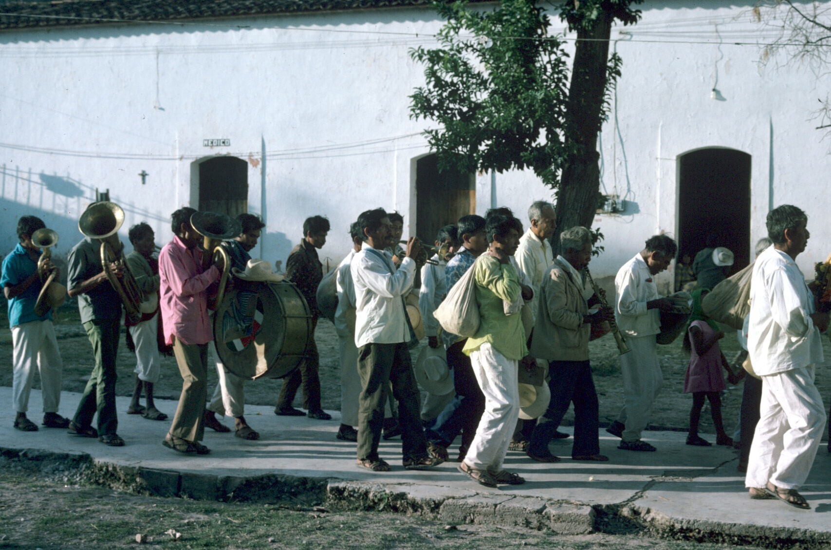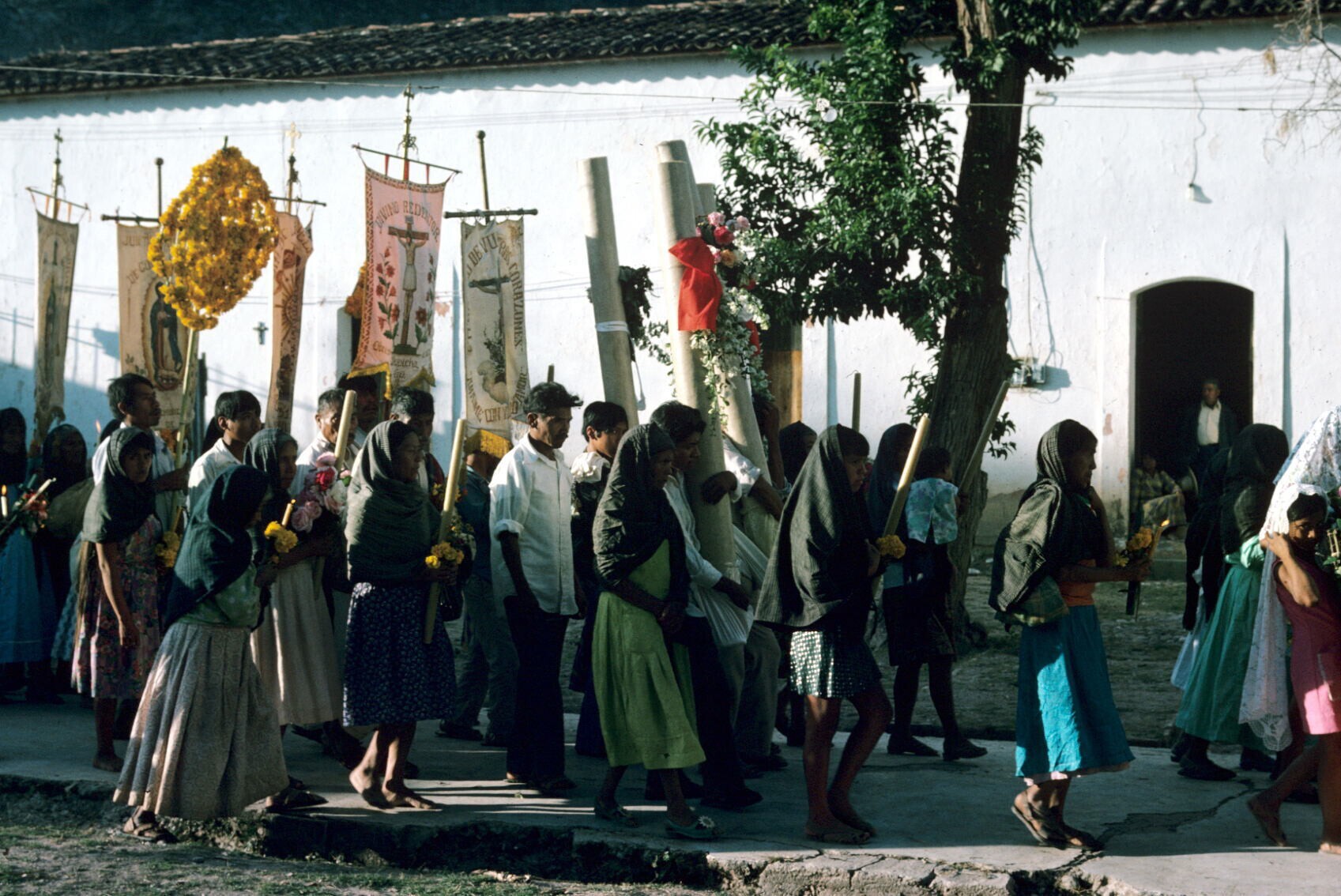 pelgrims met kaarsen en bloemen (cempaxochitl)