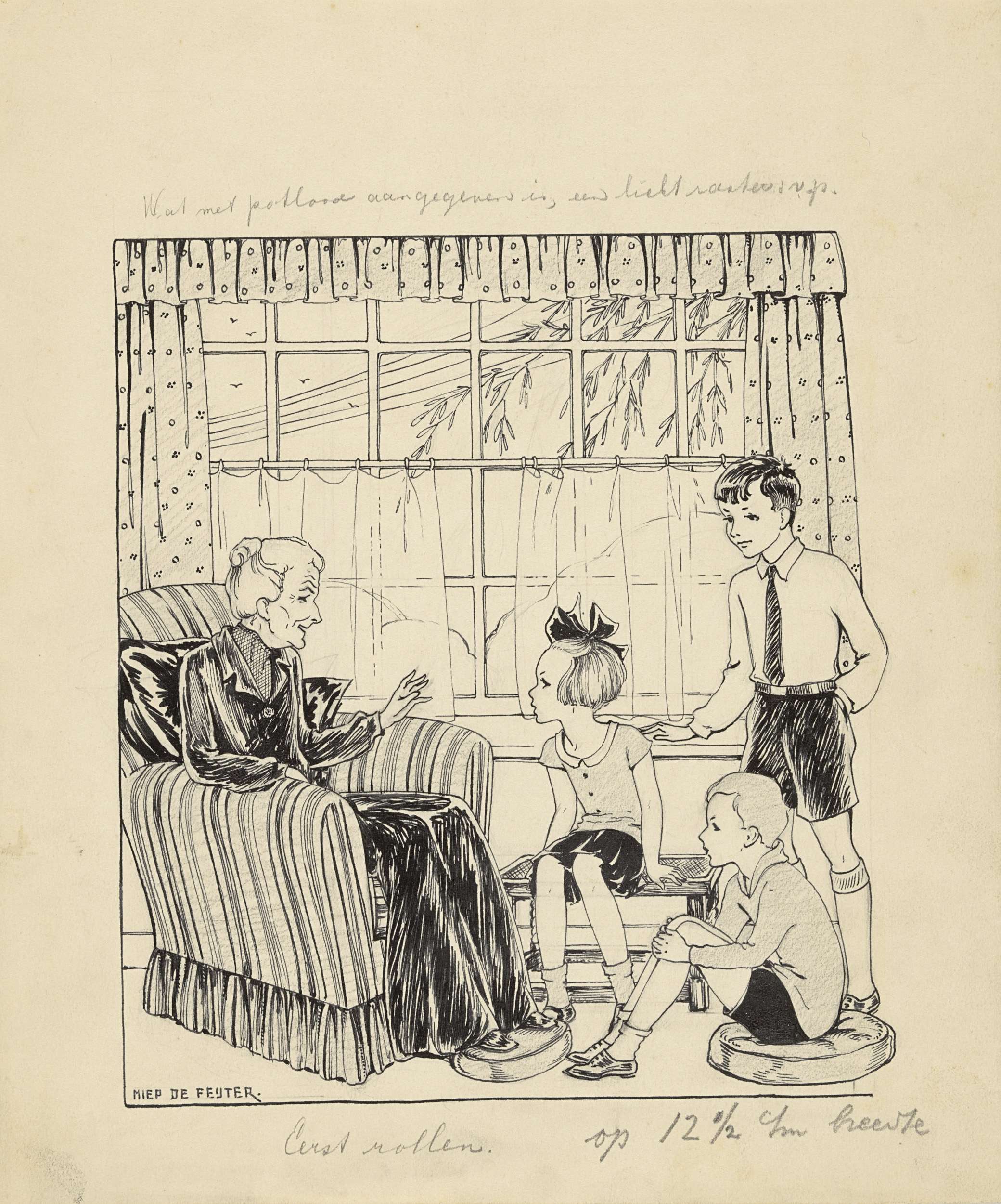 Vier illustraties bij: Nannie van Wehl, De buren, 1907