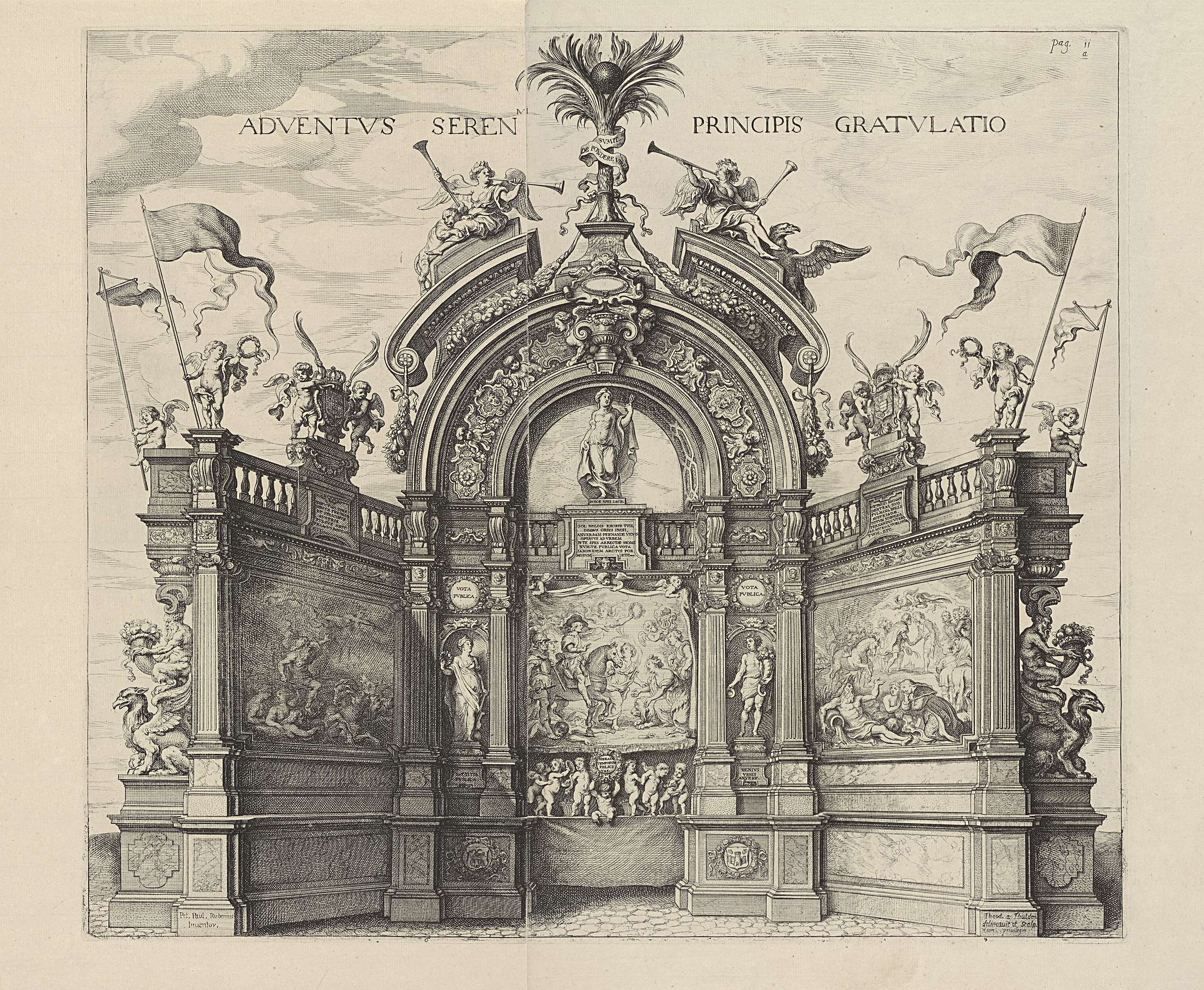 Het welkomsttoneel; intocht van Ferdinand te Antwerp...