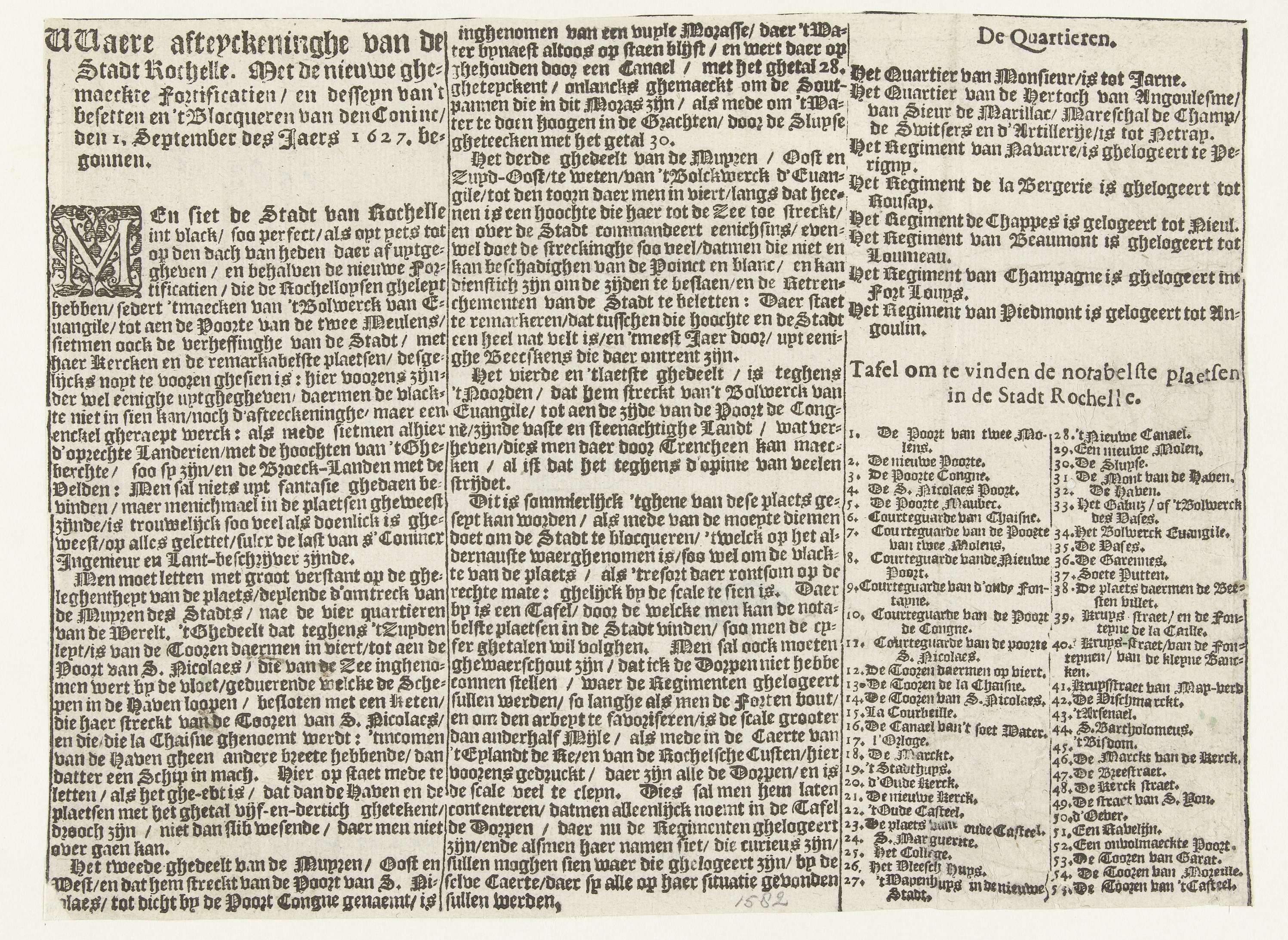 Tekstblad bij de prent van het beleg van La Rochelle...