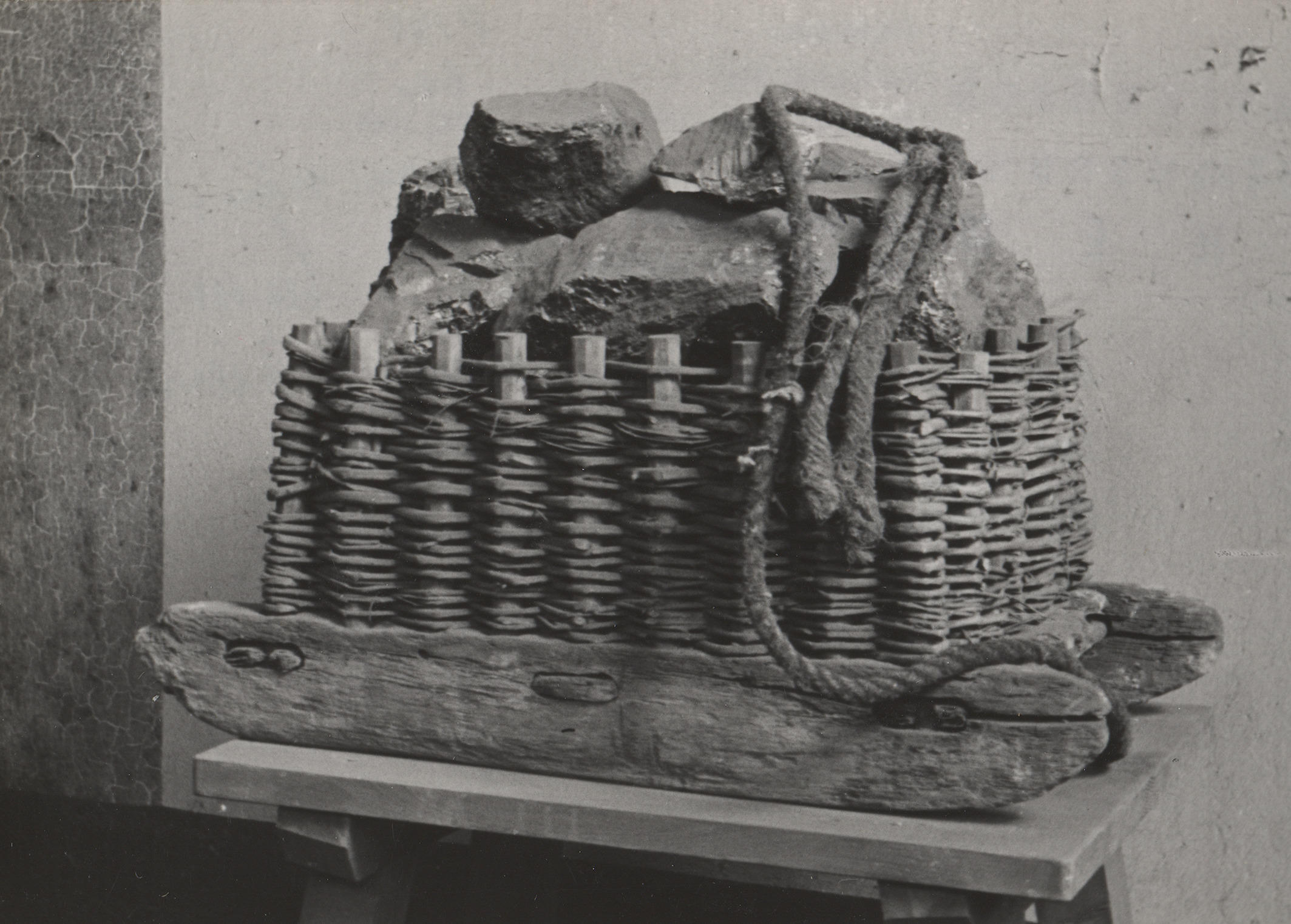 Slee voor steenkooltransport, Kerkrade, 1948 (zwart-...
