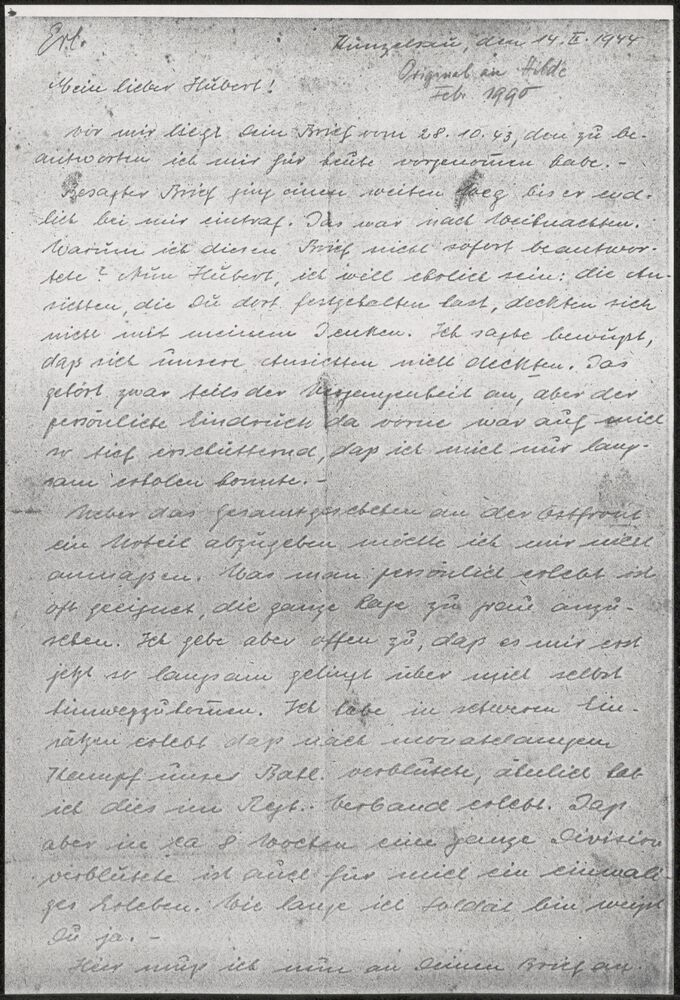 Brief (Kopie) aan Hubert van Albert 14-02-1944
